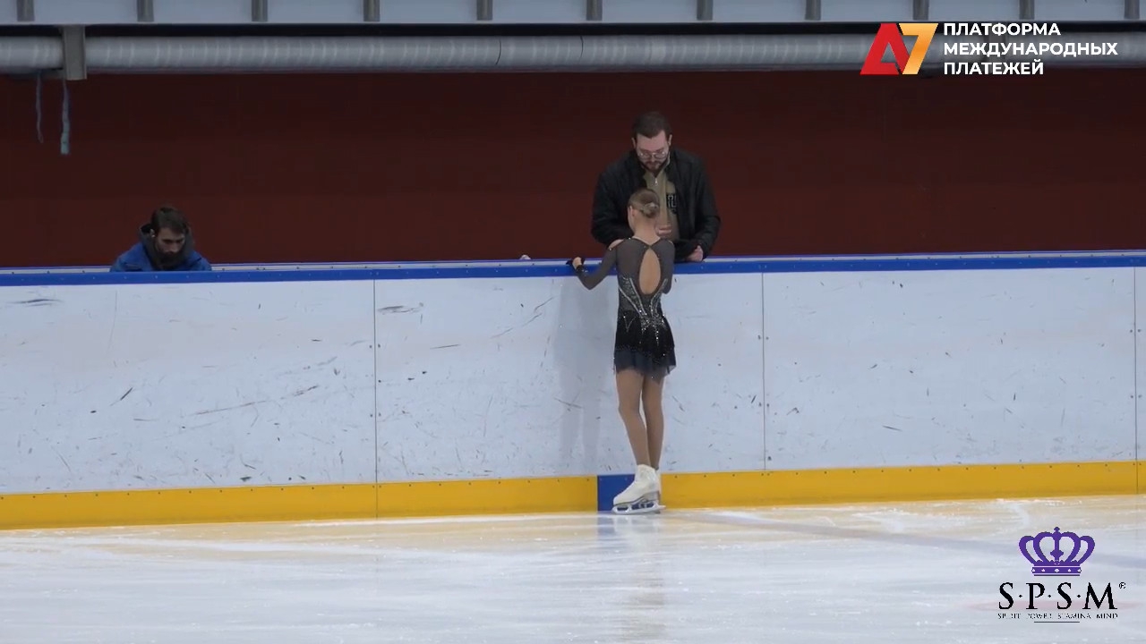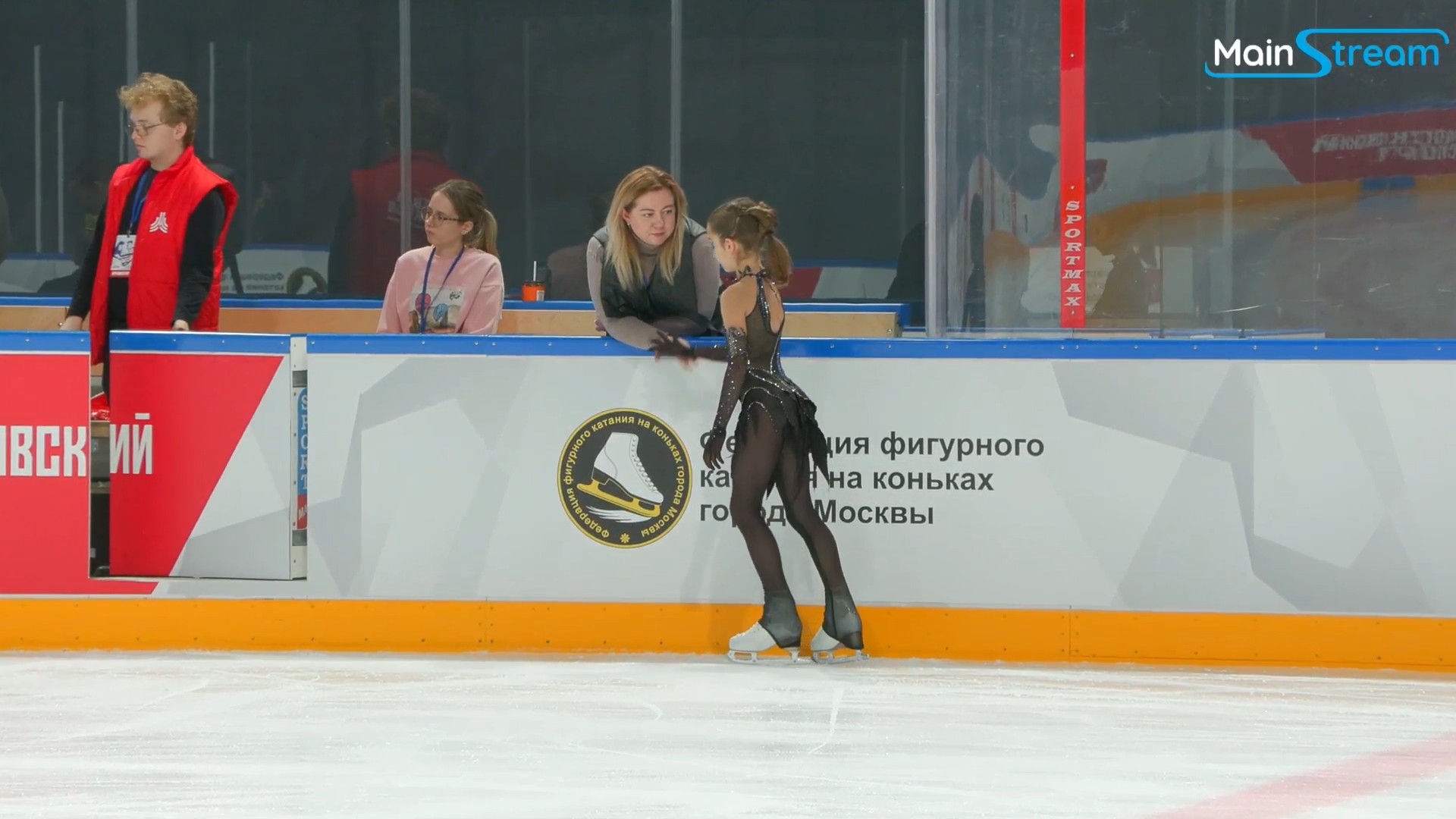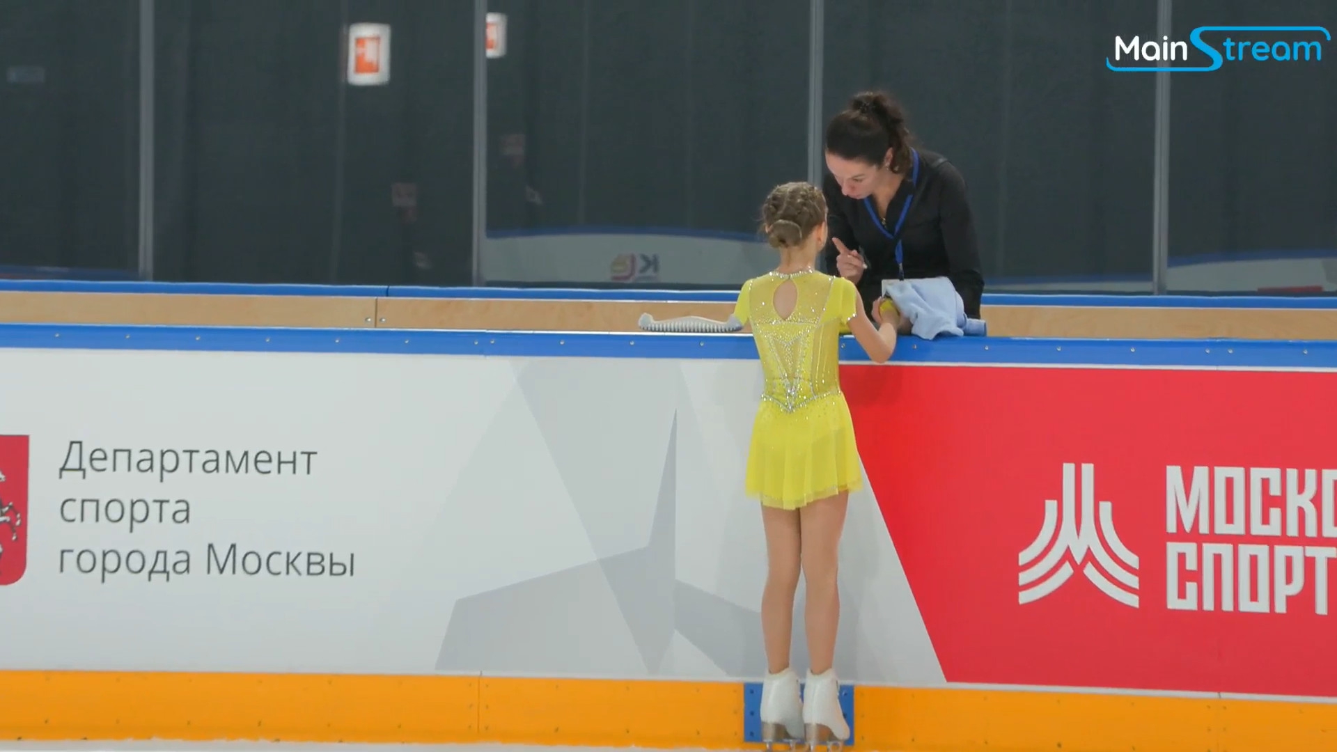 Елизавета Николаевна ЧЕРНЕНКО с А.Ю. СПб, МО Введенский СПБ ГБУ ДО СШОР "Звёздный лёд" жёлтый lalaland с жёлтыми перчатками 2a ho с А.Ю. захода 2z 2a2t ho с А.Ю. захода chsq1 бежит на зубчиках развязались шнурки на chsq1, завязывает у борта и заскакивает в калитку. музыку выключают. На скамейке ей завязывают шнурки. Самая завязать шнурки не может судя по всему. продолжает chsq1 прыжок в шпагат 2f 2z2t закрутило в тройку 2r ho прыжок в шпагат 2f so