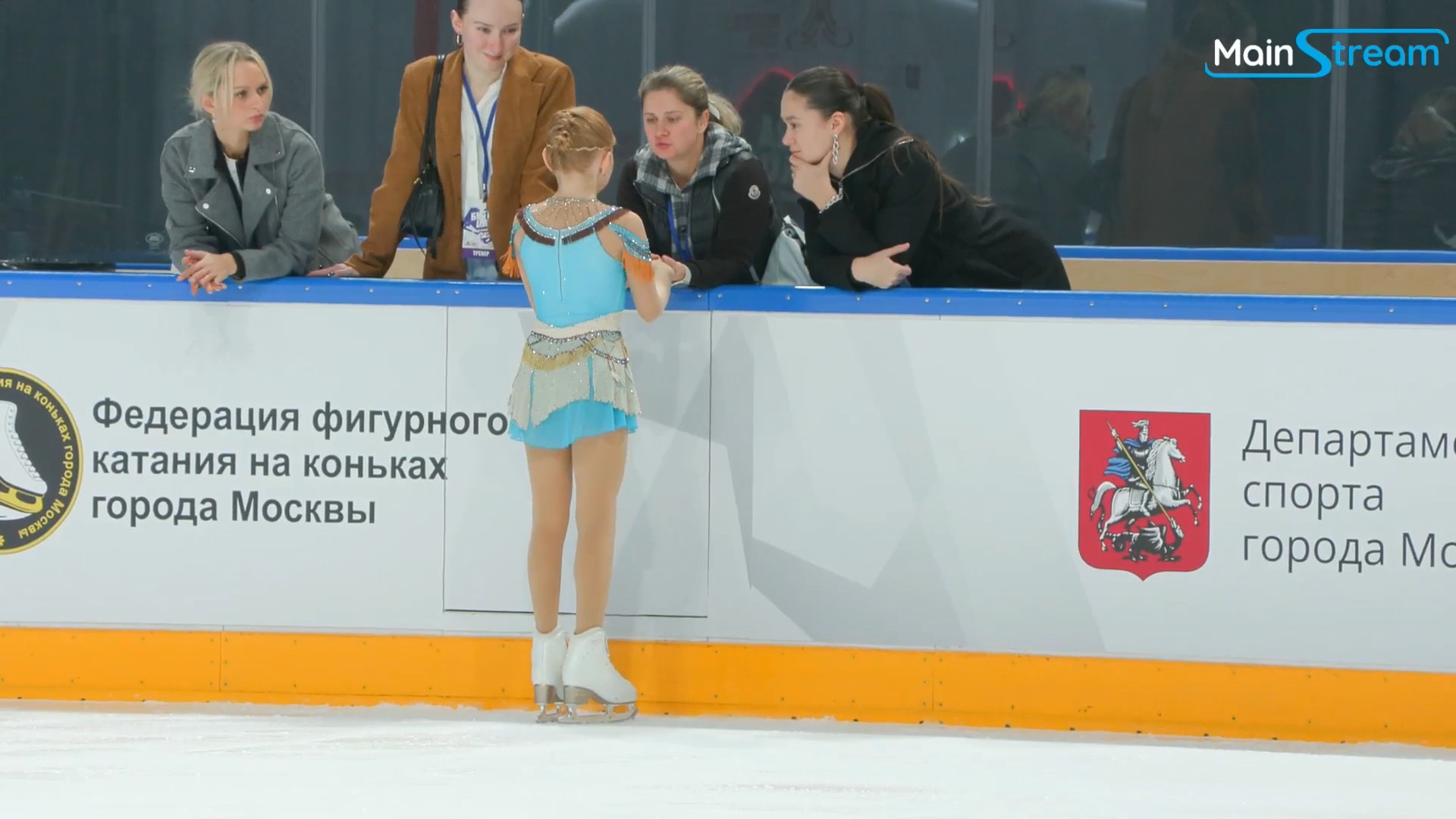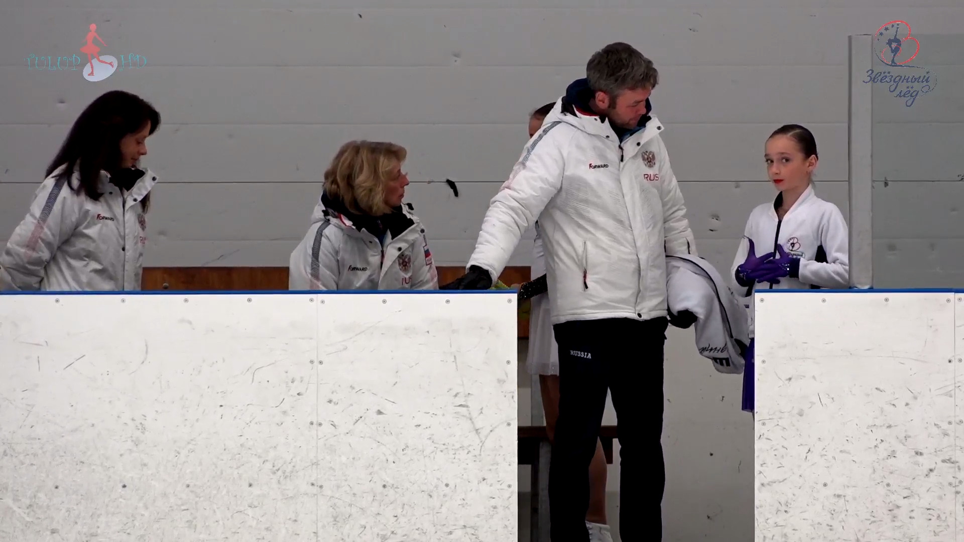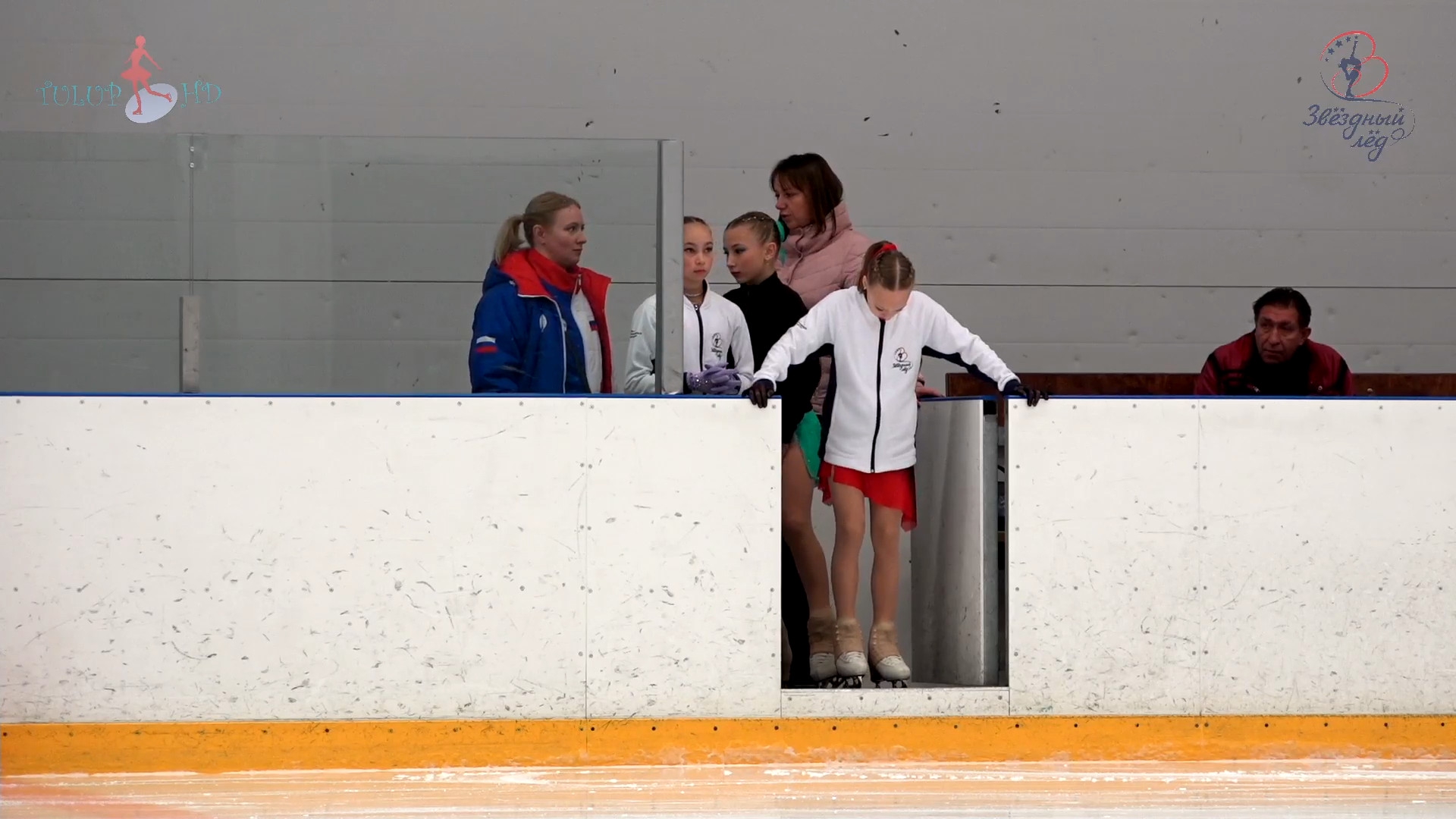 Елизавета Николаевна ЧЕРНЕНКО с А.Ю. СПб, МО Введенский СПБ ГБУ ДО СШОР "Звёздный лёд" жёлтый lalaland с жёлтыми перчатками 2a ho с А.Ю. захода 2z 2a2t ho с А.Ю. захода chsq1 бежит на зубчиках развязались шнурки на chsq1, завязывает у борта и заскакивает в калитку. музыку выключают. На скамейке ей завязывают шнурки. Самая завязать шнурки не может судя по всему. продолжает chsq1 прыжок в шпагат 2f 2z2t закрутило в тройку 2r ho прыжок в шпагат 2f so