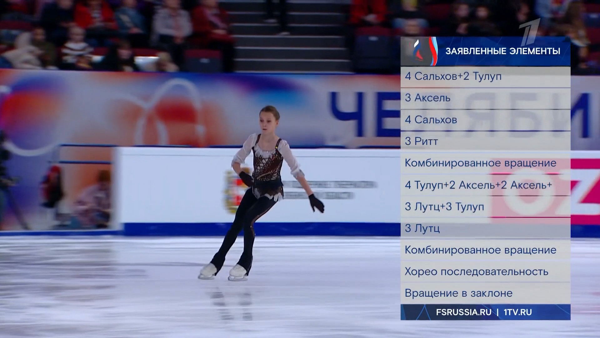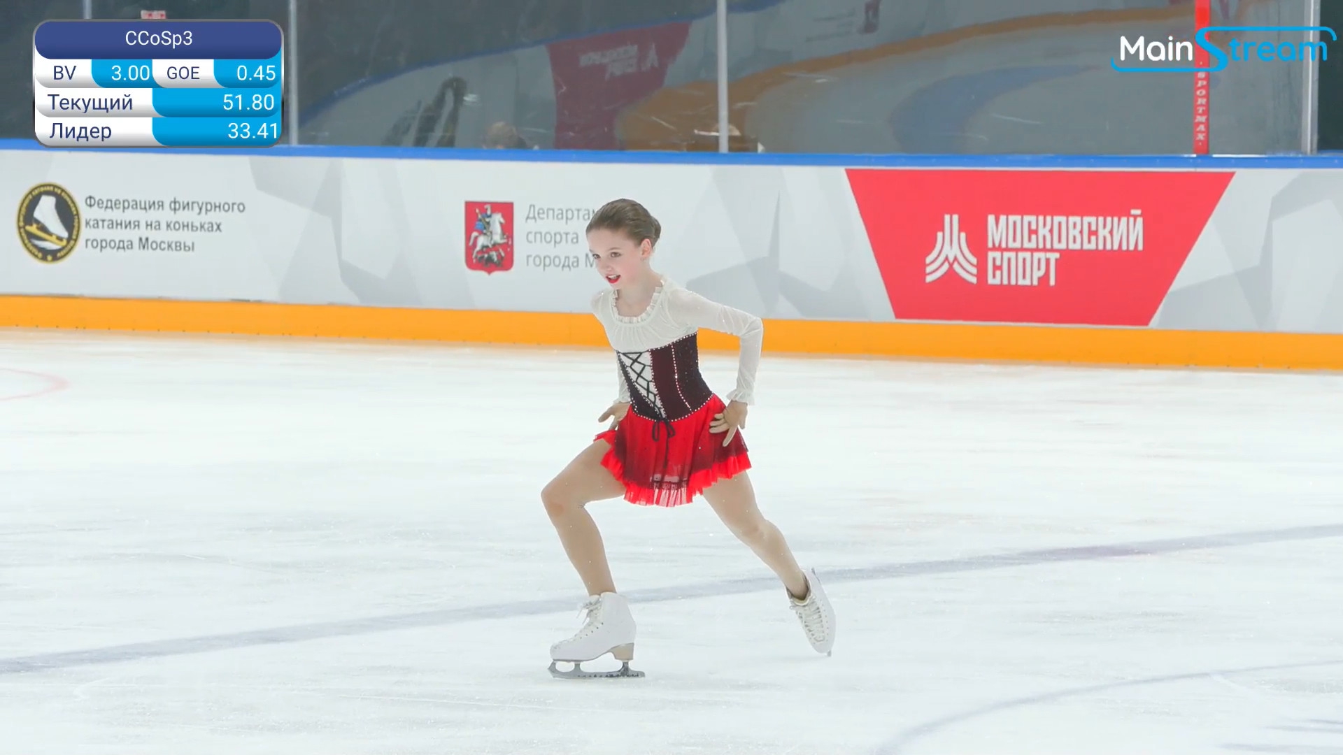 Мария Артёмовна АРТЁМОВА МАУ ДО СШОР имени Ю. Е. Ляпкина Trinity 3z высокий, пролётный 3s 3f<?2t тоже пролётно 3r q? chsq1 3z q? 2t (бабочка?) (3zq) пролётно 3f!q?3t< fall 2a< stsq2 mona liza overdirve запыхалась