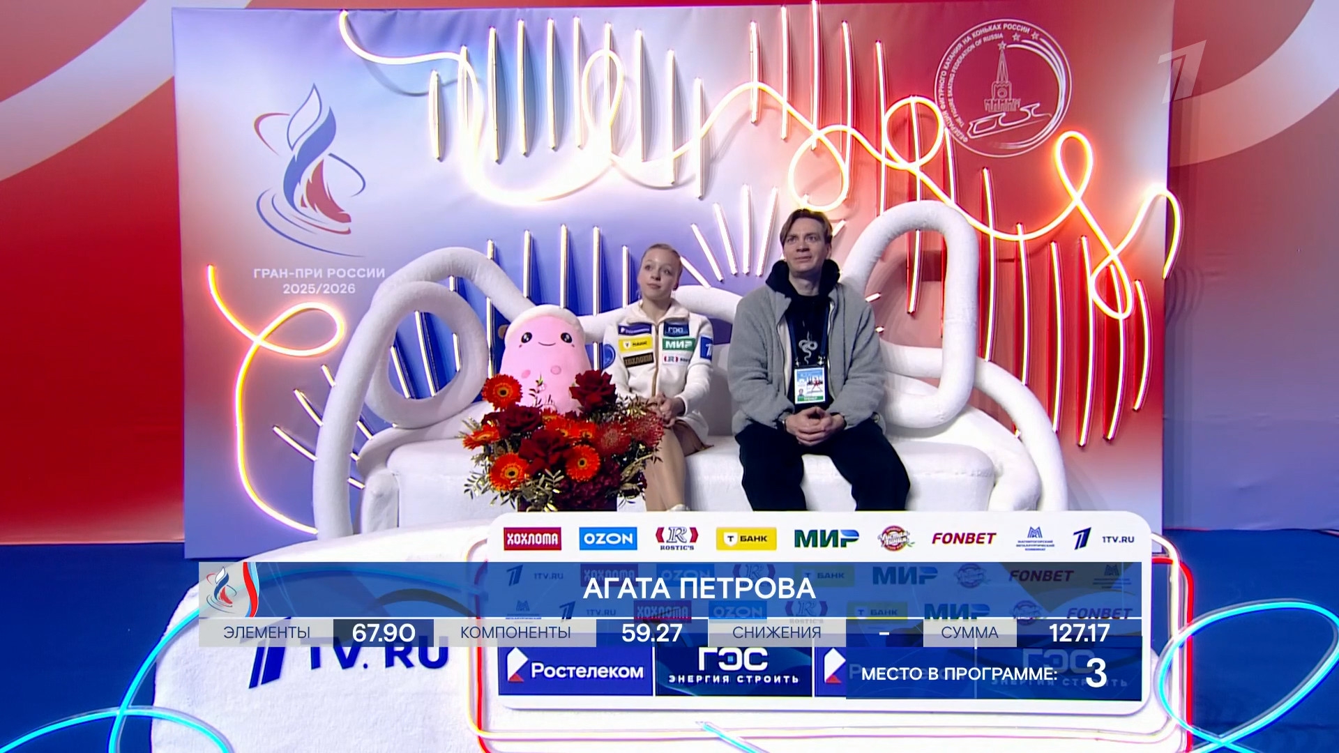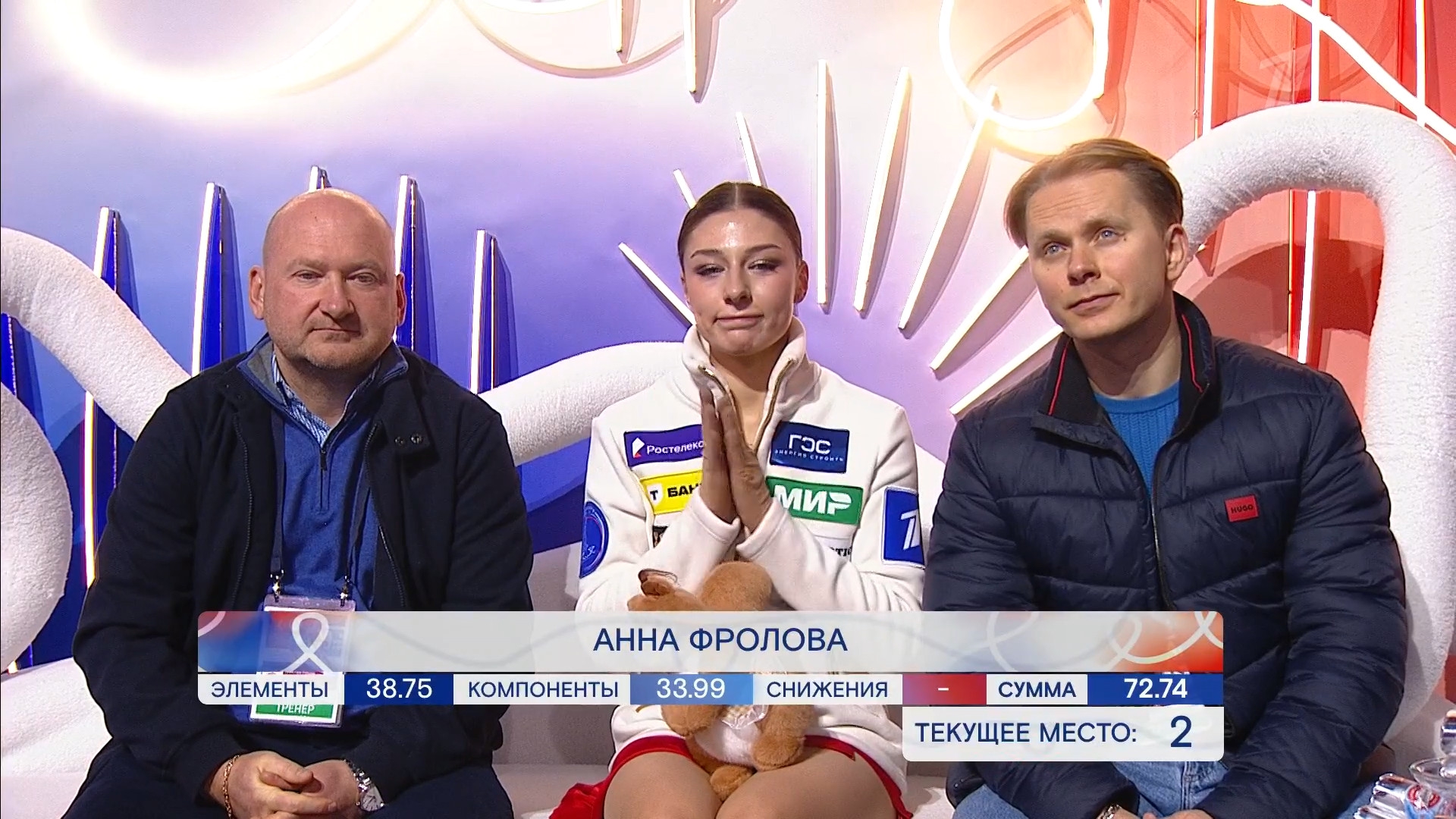 А.Фролова 3z3t 3f2t 3r<? 2a цуревыезд 3z2a2t 3f<? 3s stsq2 всё то же впечатление, что она не почти тренируется. При этом всё прыгает >Спасибо первому каналу за возможность наблюдать Дослушать эту ценную информацию от Ягудина не удалось.