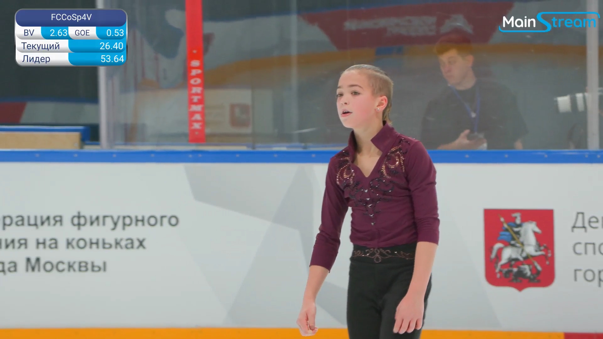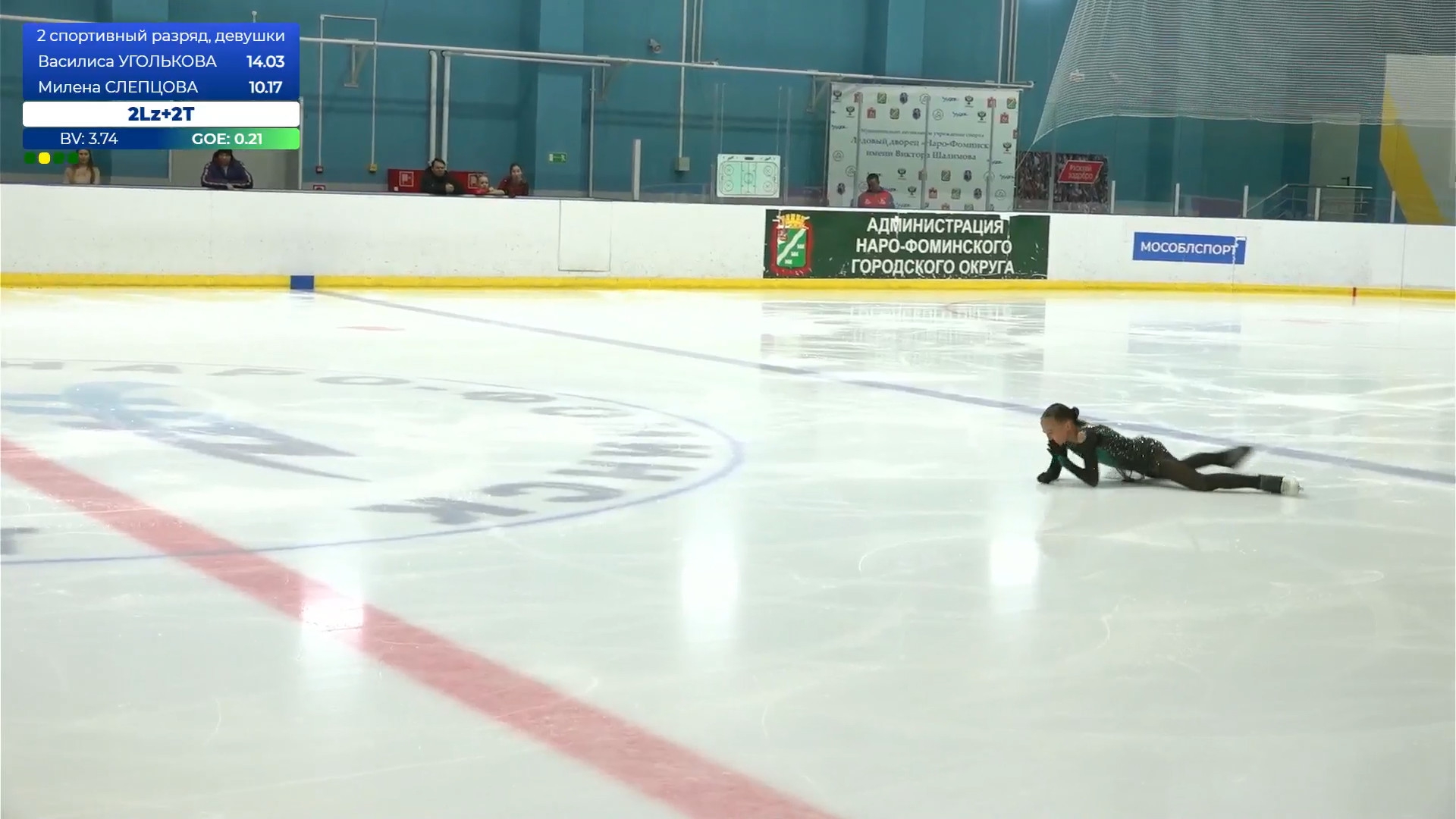 Элина Александровна СОКОЛОВСКАЯ, 13 лет (2012-07-20), Никита Бочков МАУ ДО СШОР имени Ю. Е. Ляпкина 3r<< fall 3s<2t (3s<<) 3s<< chsq1 2a<?1a2r (2aq) 2aq? 2f2t с бести присяда