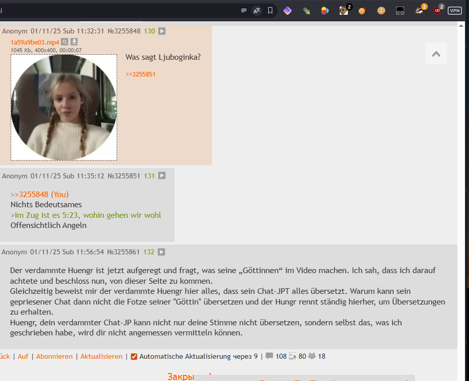 >>3254903 it is an ongoing VK-livestream, SUKABLYAD! I had to screan-record that shit since I have no idea how to record it via streamlink back 1 hour. also, no tshukurushki: not making big efforts.