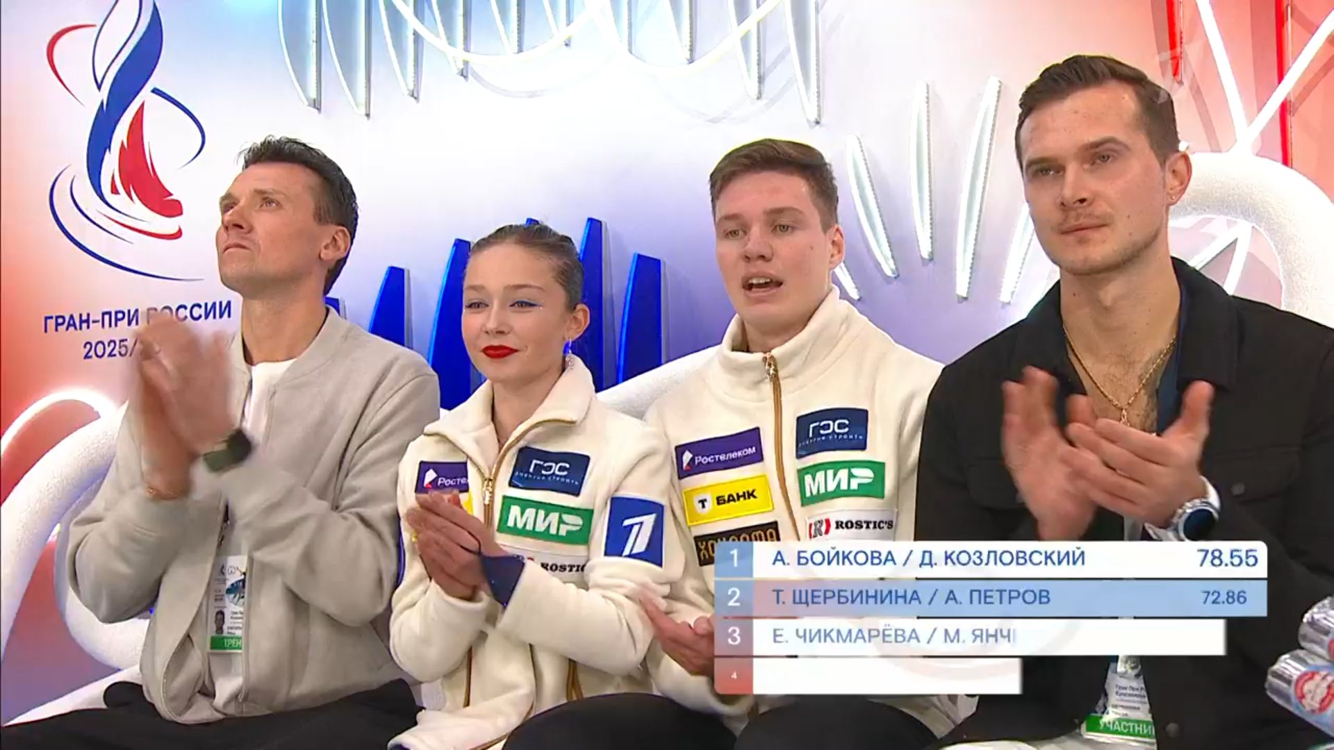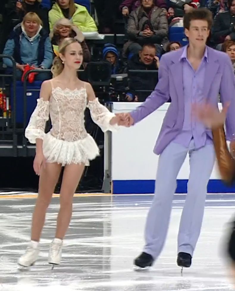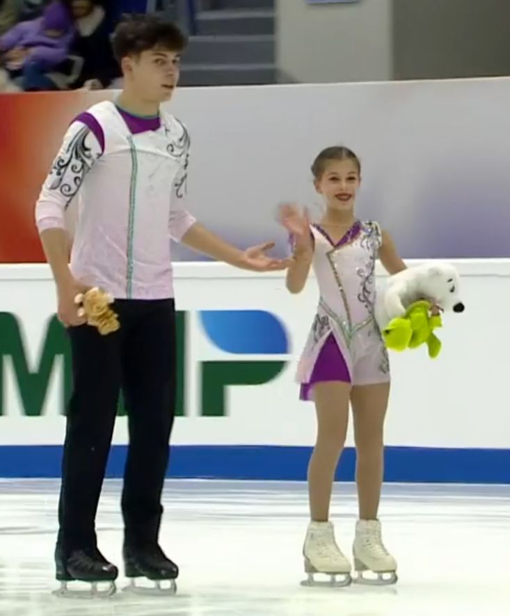 >«Ребята, Таисия и Даниил, которые сегодня заняли лишь второе место на этапе Гран-при в Казани. Я от себя хочу вас публично поздравить, вы огромные молодцы, двигаете фигурное катание вперед.