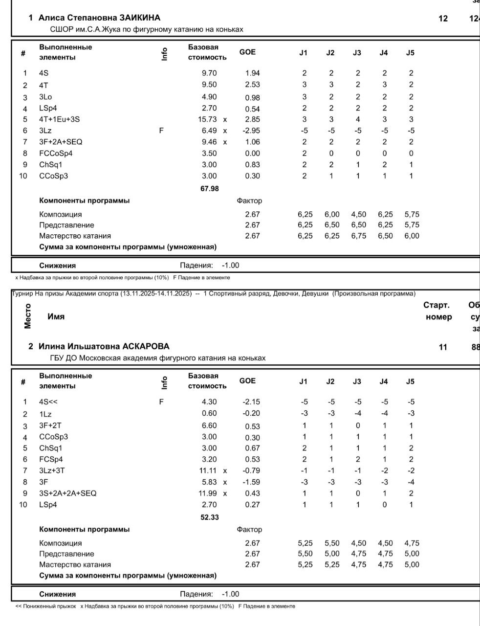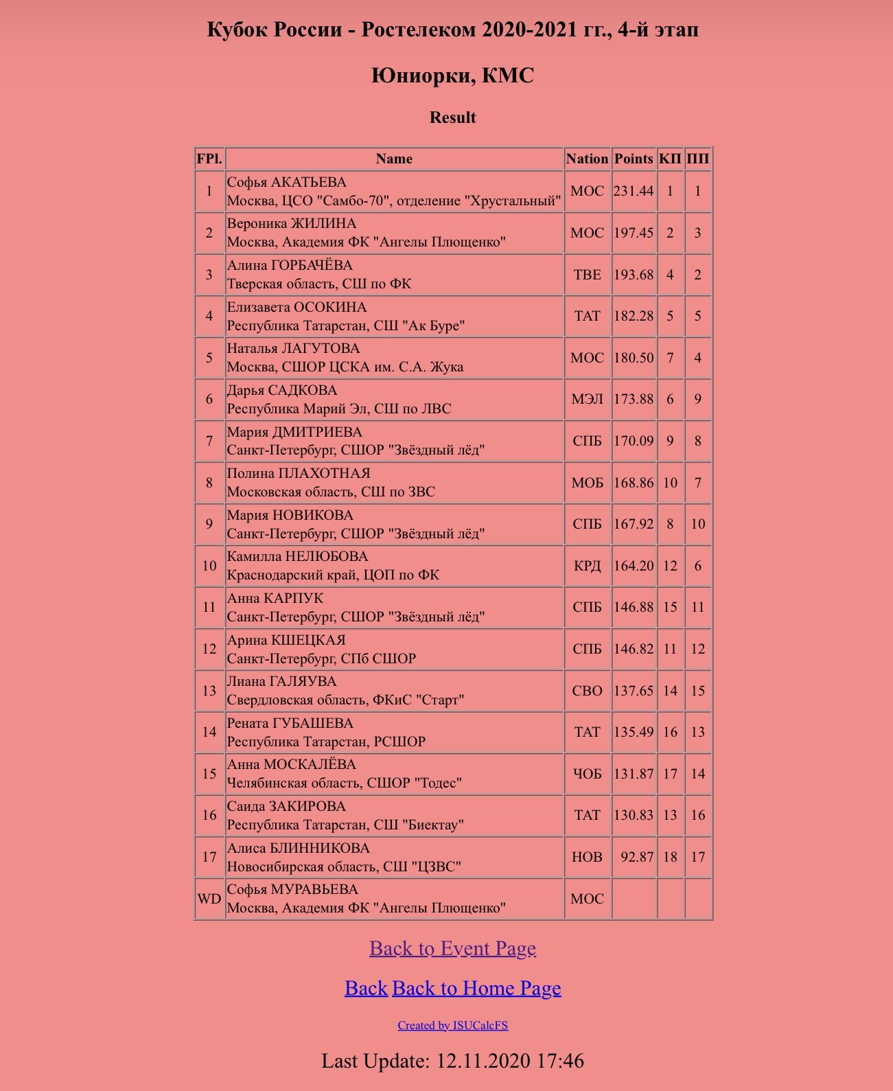 Орешек с квадом третий. Это, конеш несправедливо. Провинциалку без блата всегда будут попускать ( Я бы Орешка первым поставил, Спрутика вторым, а Сарафанову третьей. жалко Парсежку. С хорошими прокатами даже в тройку не попала.