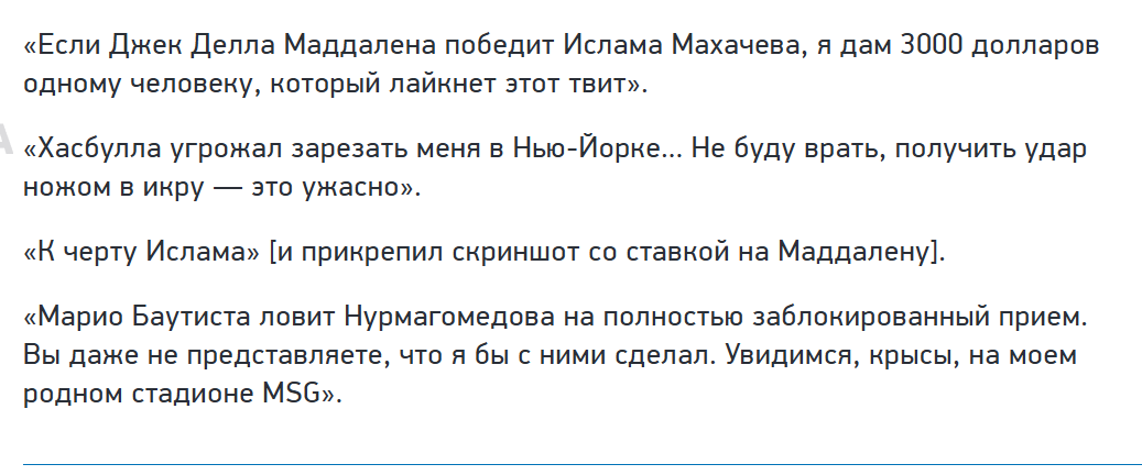 Ну че нахуй, где ты пёс ебаный, что пиздел какой Мадаллена крутой как он Исламу бой даст и ойойойой ему нелехко будэ, ой страшно мне за ислямчика?