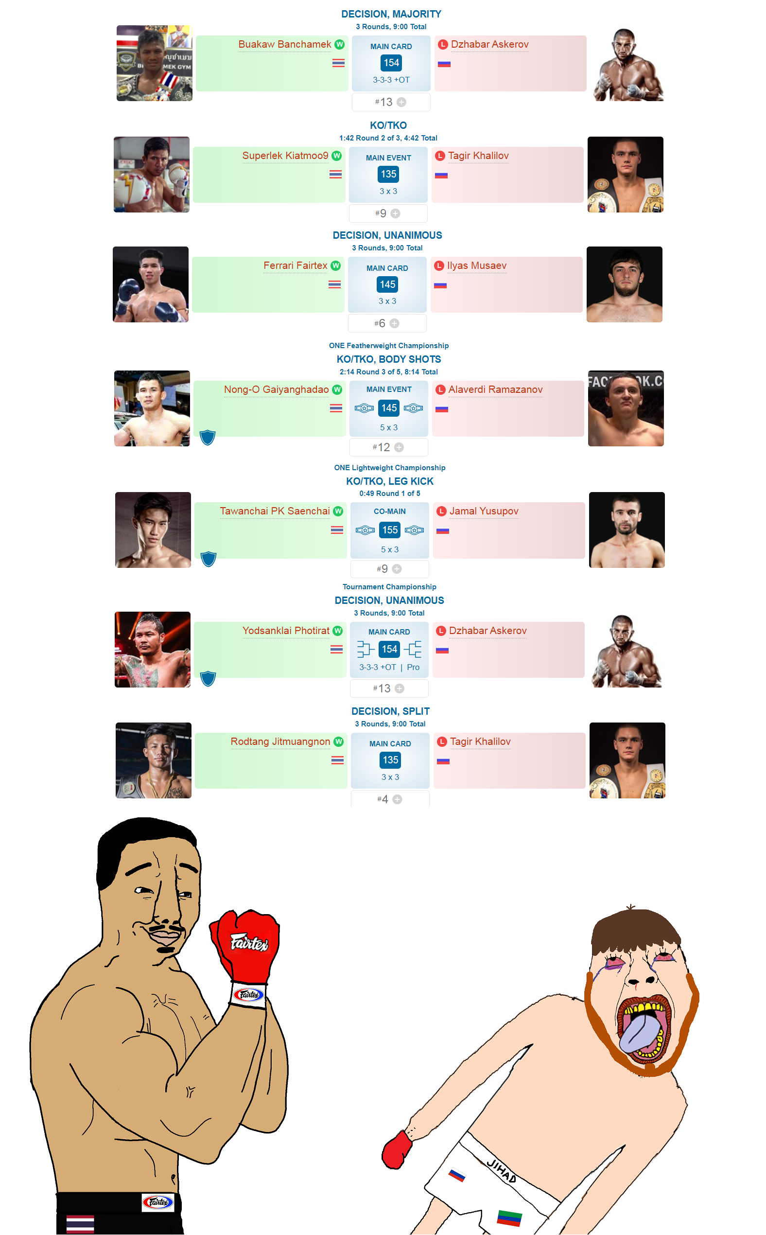 >>3260471 > Ну и очевидно что они спортом занимаются не ради спорта а чтобы русню пиздить, да и всегда можно заработать тренерством хуенерством, ты видел цены на трени щас Им просто делать нехуй больше.