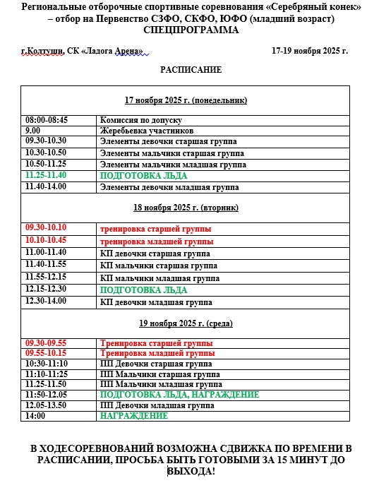 21 ноября 09.00-16.00 – Девочки, Девушки 1 сп., КП (подготовка льда после 3 и 6 разминки)
