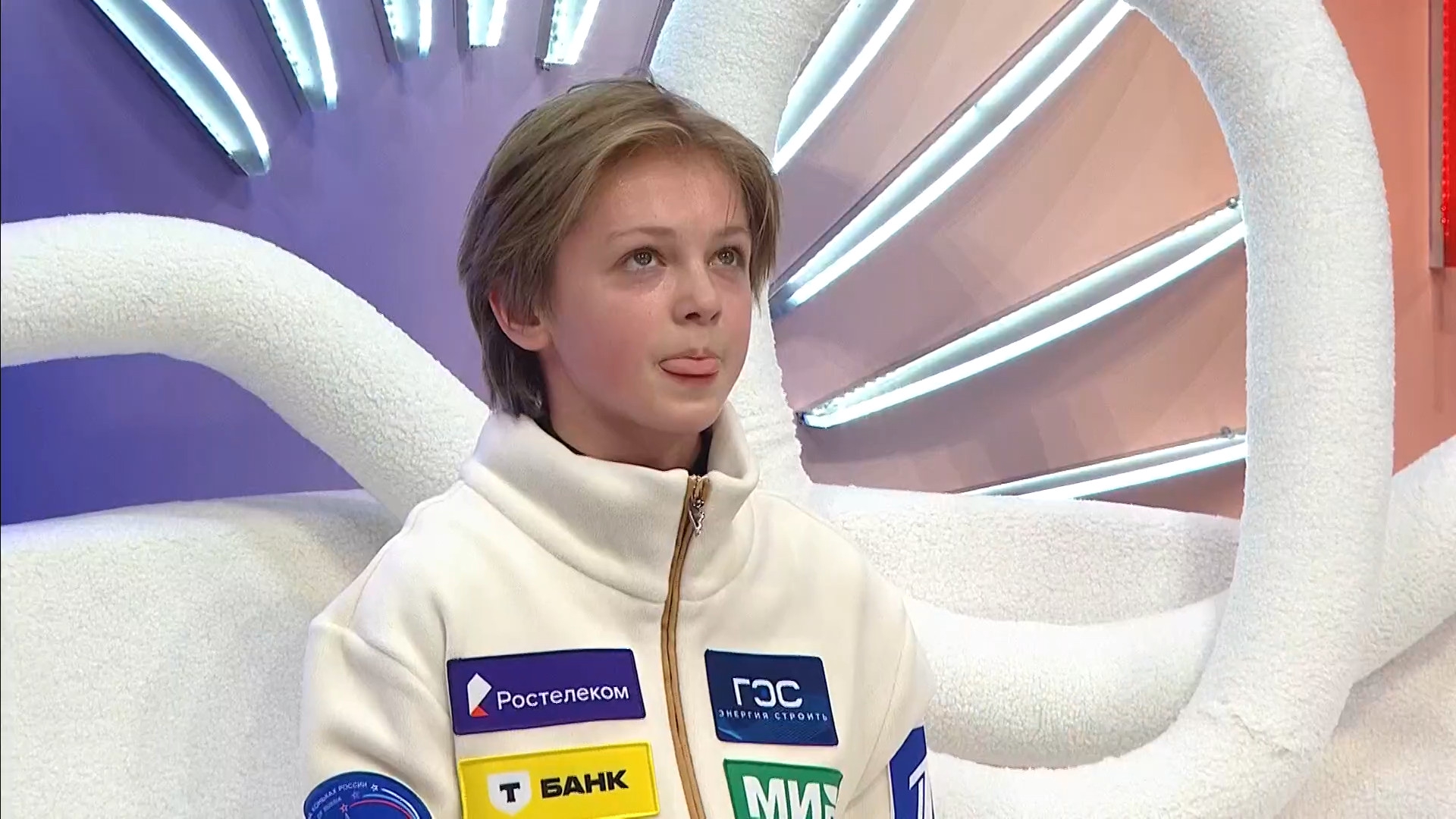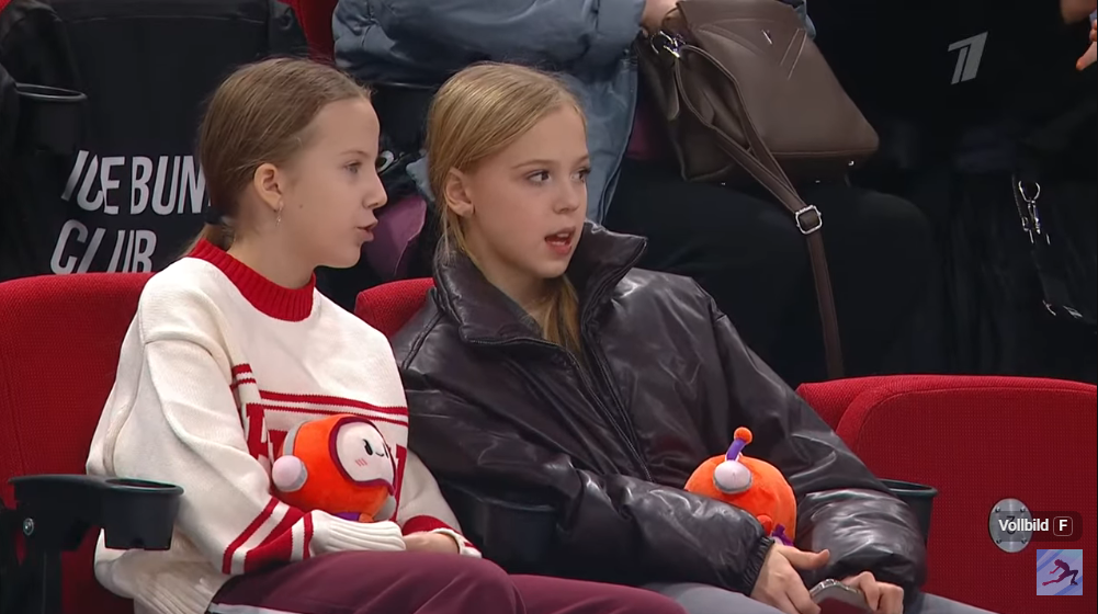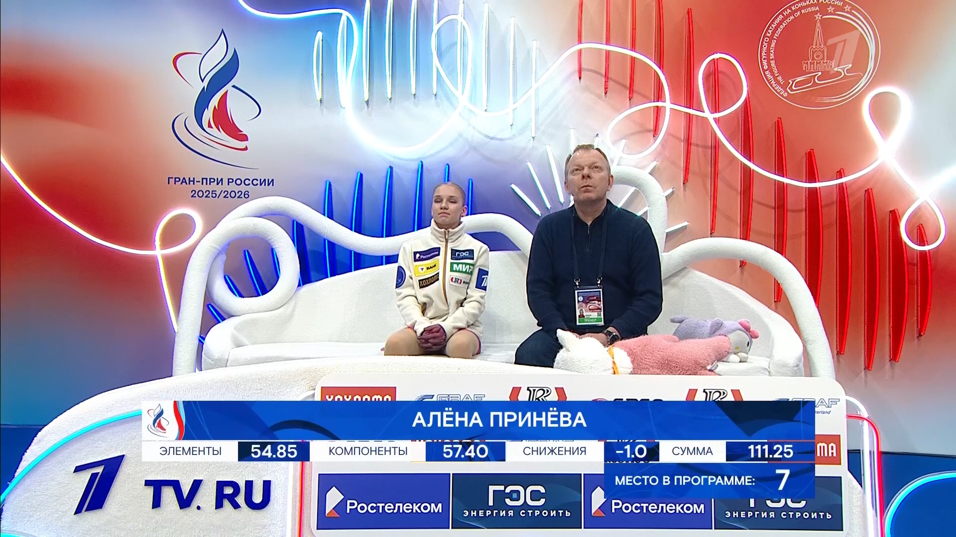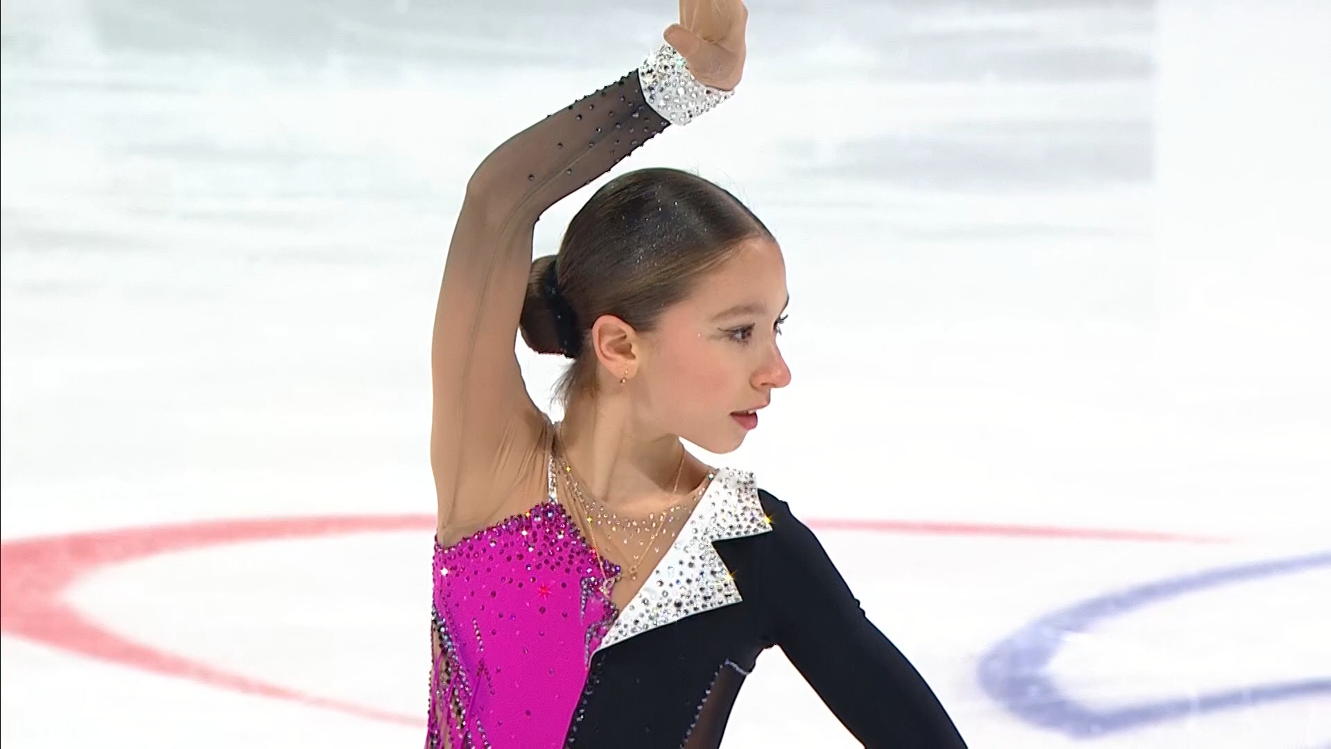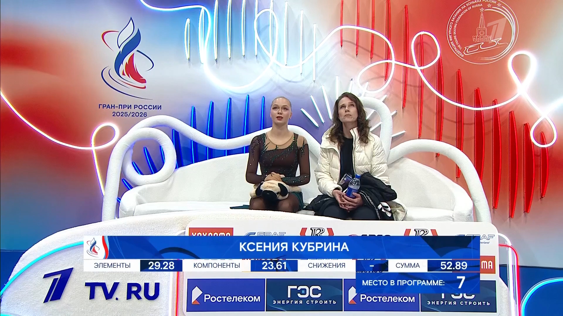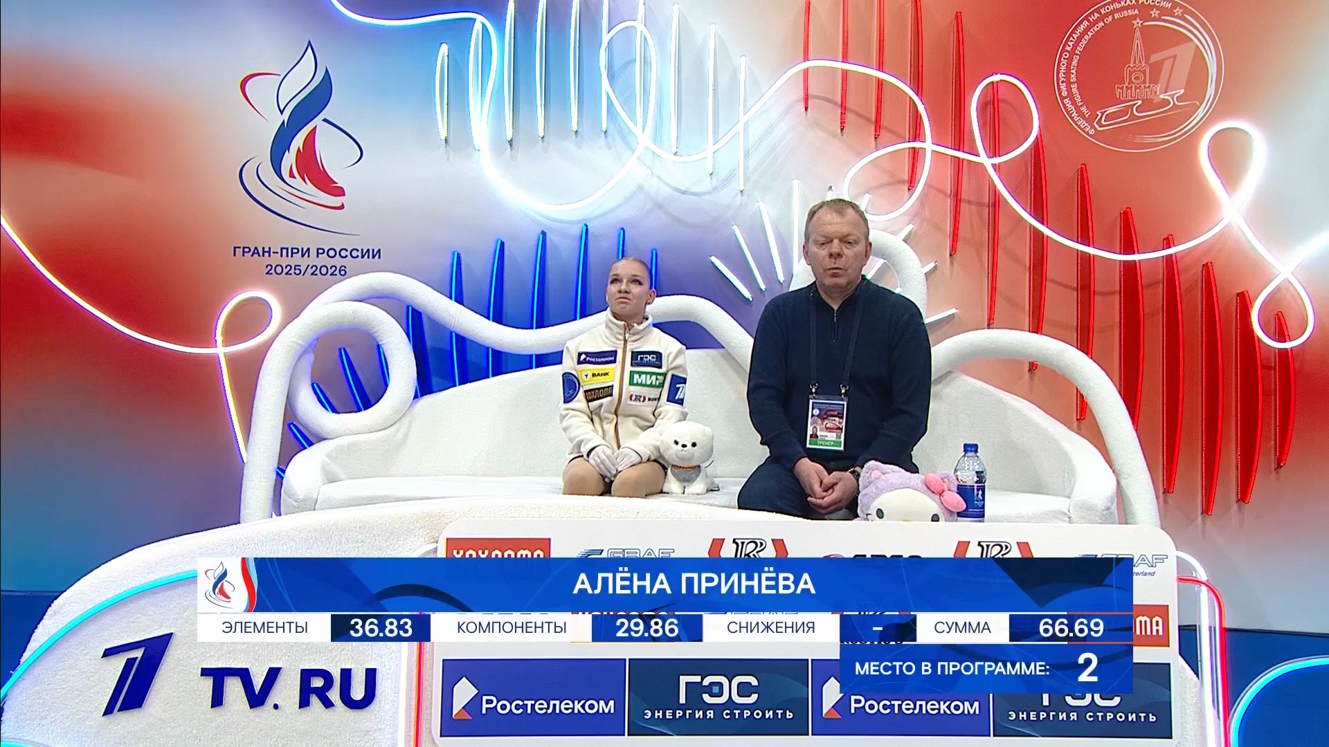 Милана Александровна ПУШКОВА швырнула чехлы под ноги тренеру, ей пришлось нагибаться, поднимать. 2a< 3s<< в подпрыжку, одноножный stsq уровня юный фигурист с подпрыжкой в шпагат 2z2r не успела? оставила приятное впечатление.