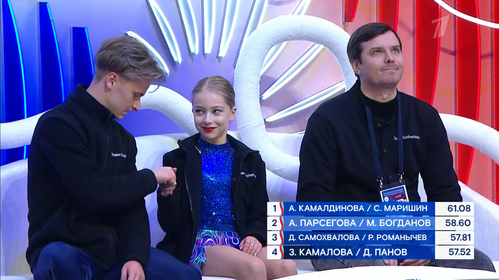 Александра Владимировна ГНИЛОМЕДОВА с Антоном Шибевым Team Tutberidze 3z fall 3z2t2r (3s ставят) 3r< (<<?) fall chsq1 3f!2a докруты есть, но сомнительны 3f!<< fall 3s