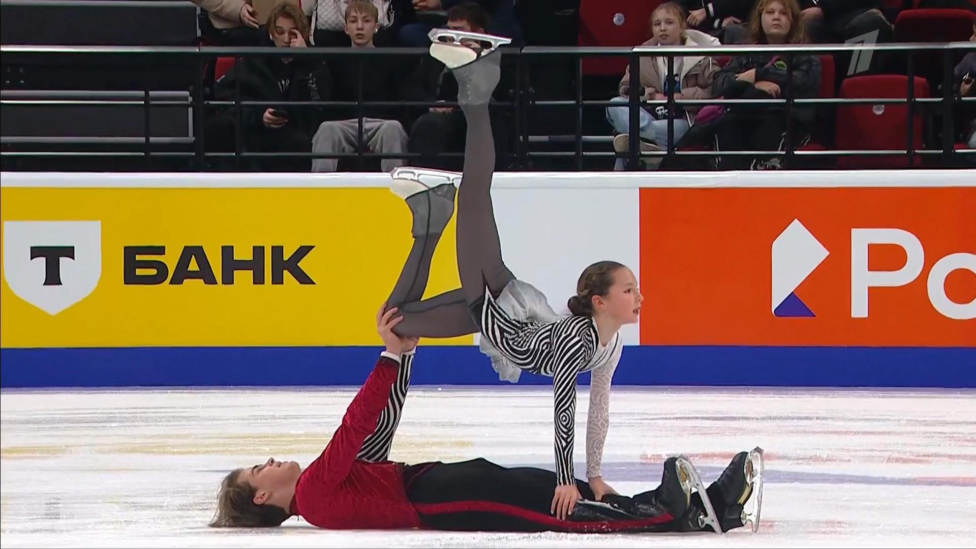 Валерия Артемовна ШАРАПОВА с Татауровым Санкт-Петербург, СШОР "Звездный лед" 3r 2a с прыжка в шпагат, бести какая-то неуверенная Шарапова 3z!? клюнула 3t< с телеграфа еле ходит stsq2 ужас, робот какой-то куда дели старую Шарапову?
