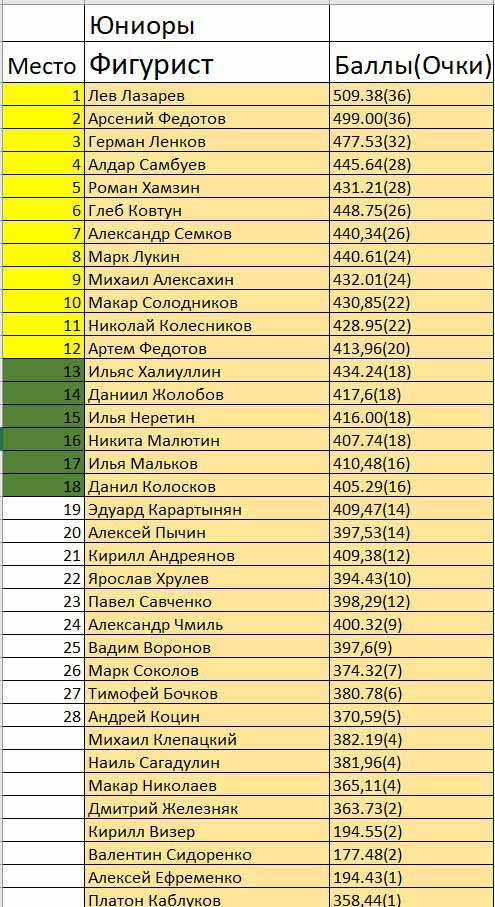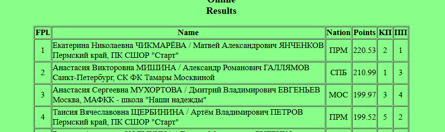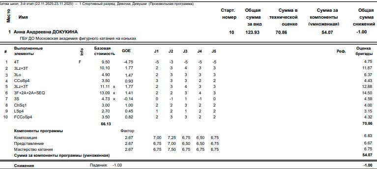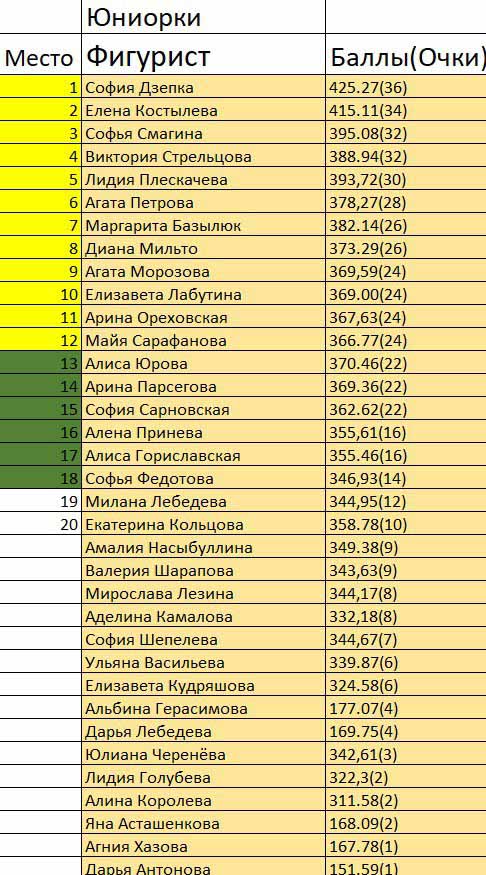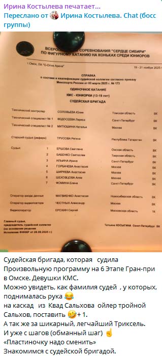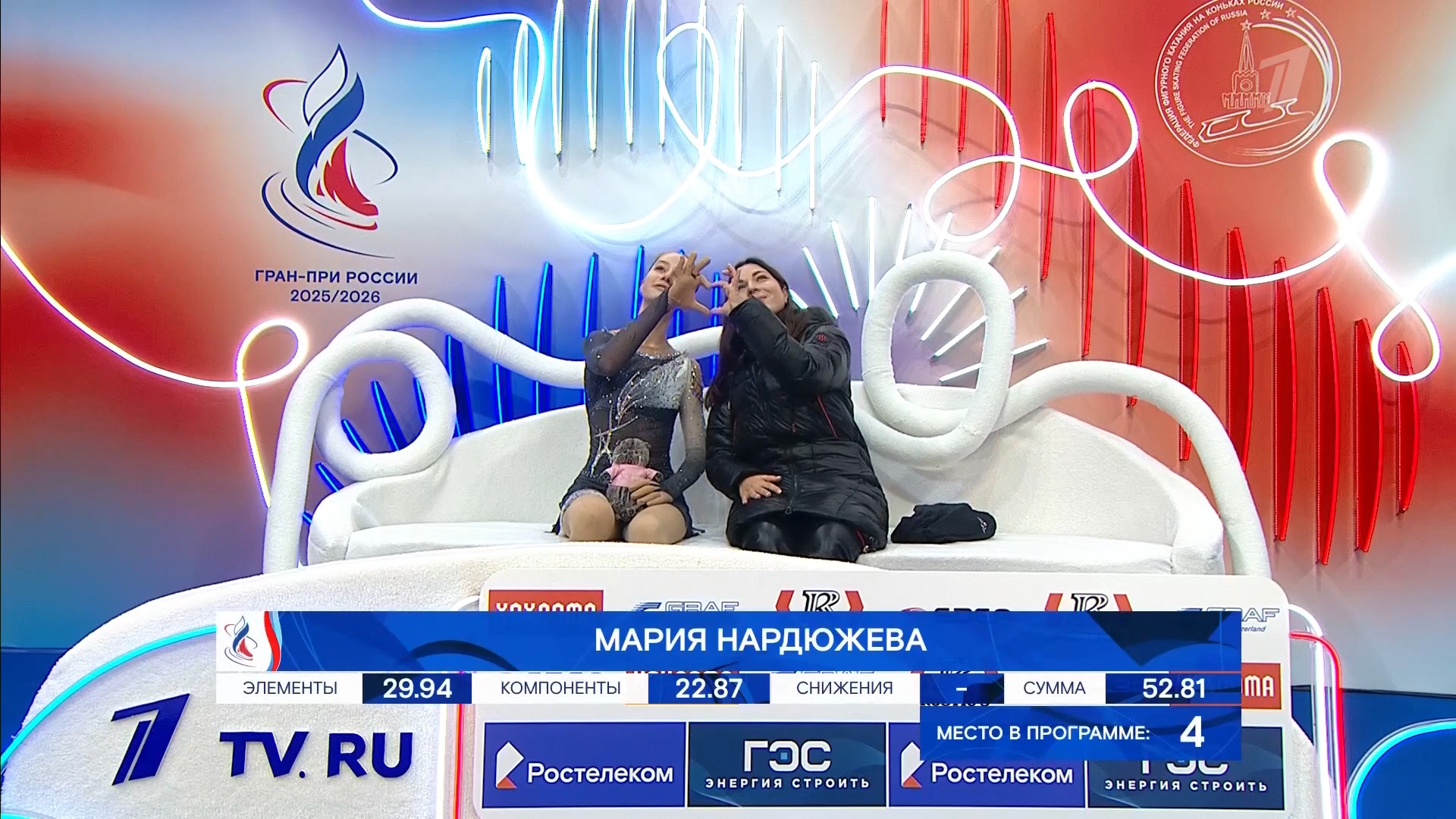 Мария Павловна НАРДЮЖЕВА Ростовская область, СШФК "Профессионал" 2a 3z3t никакого желания пересматривать этот прыжок lsp1 потеряла центровку на бильмане stsq2 очень слабо, но старалась в меру сил 3r в оригинальные твизлы Нардюжевой (тех бригада находит q, Щербакова как и я этого не увидели) слайд в финальную позу