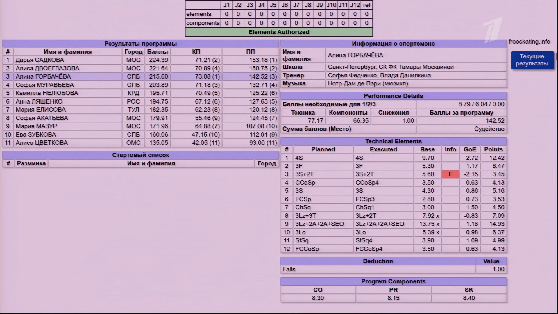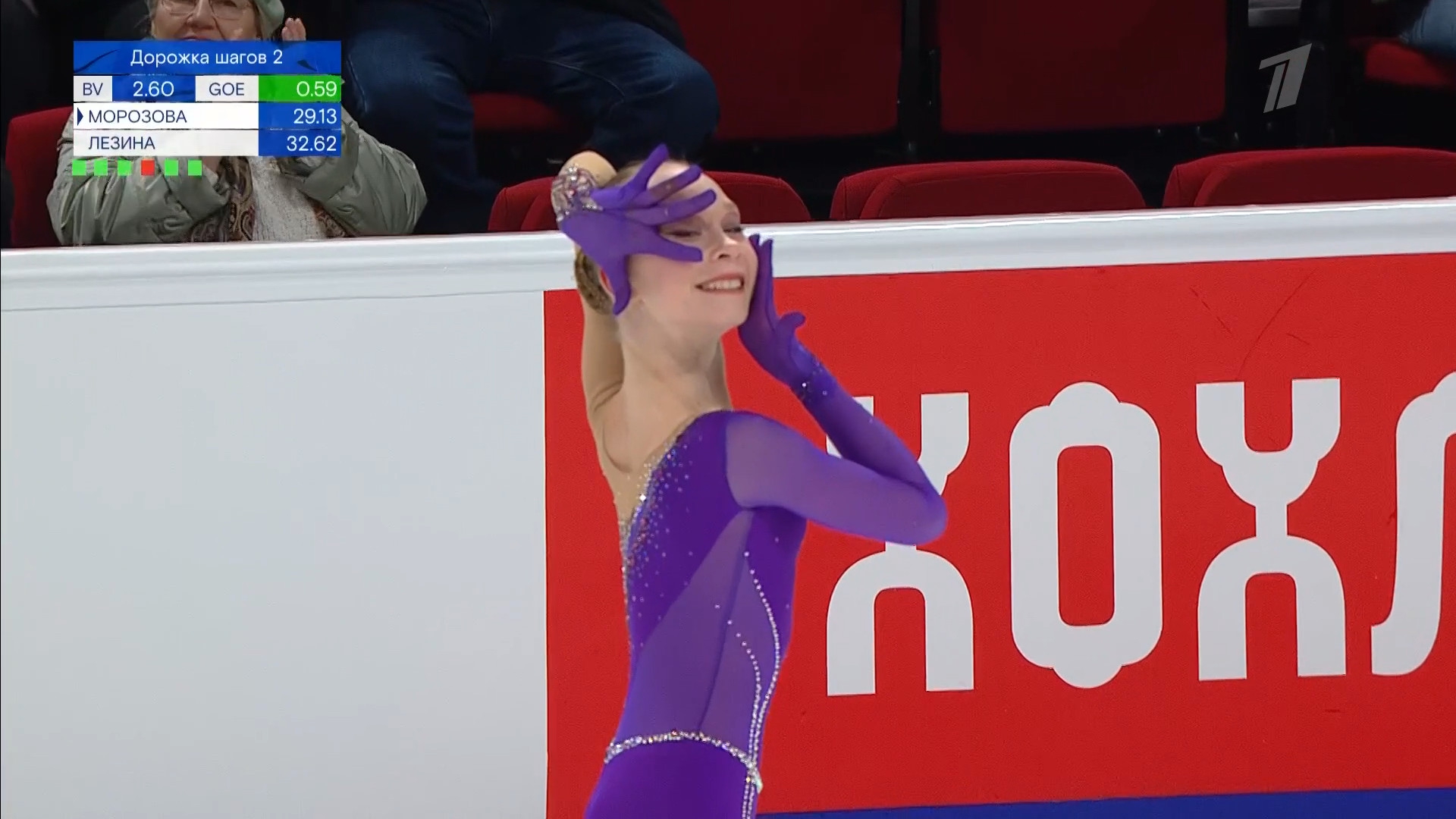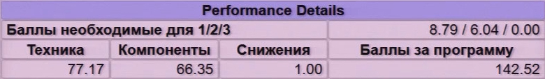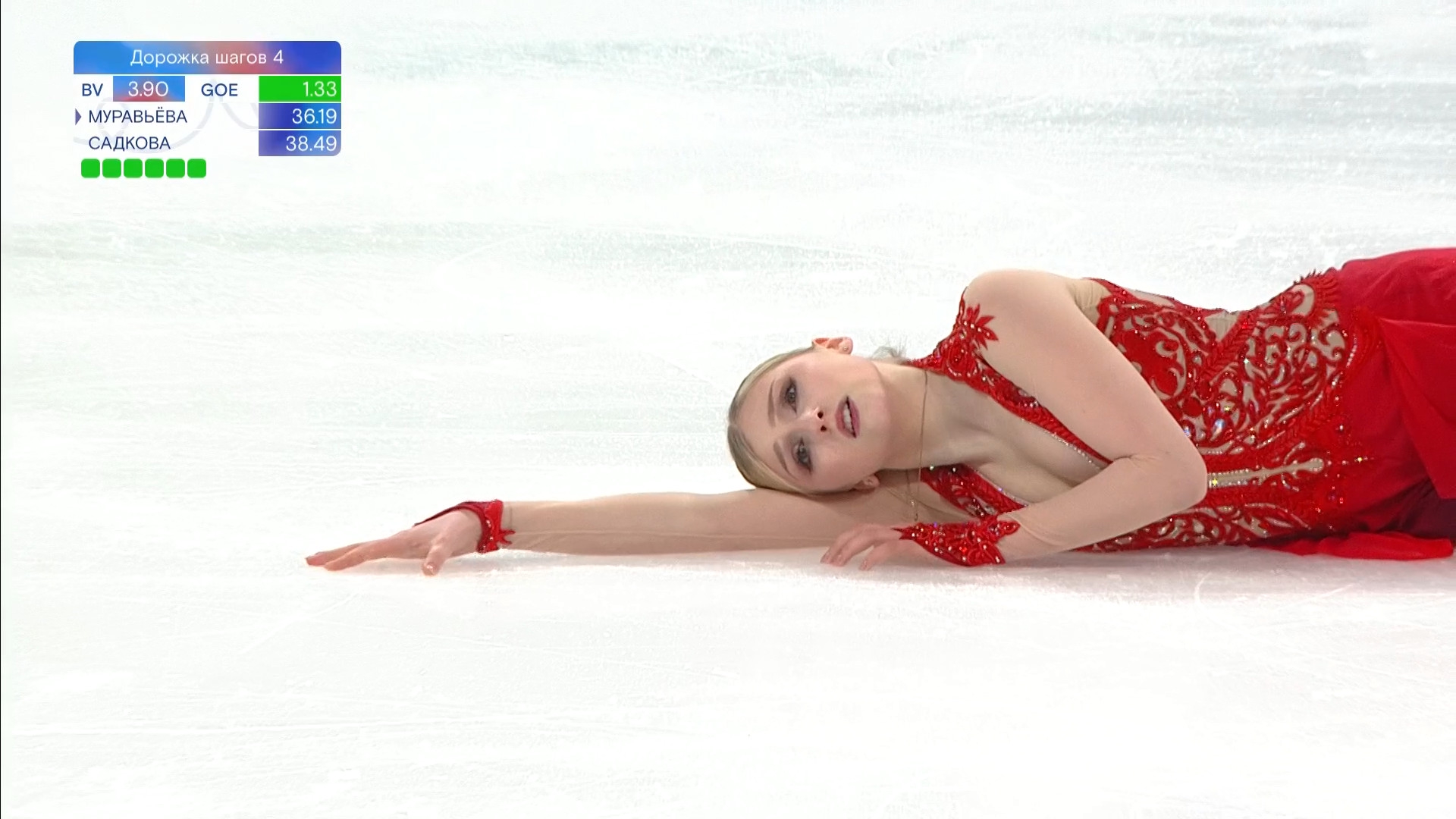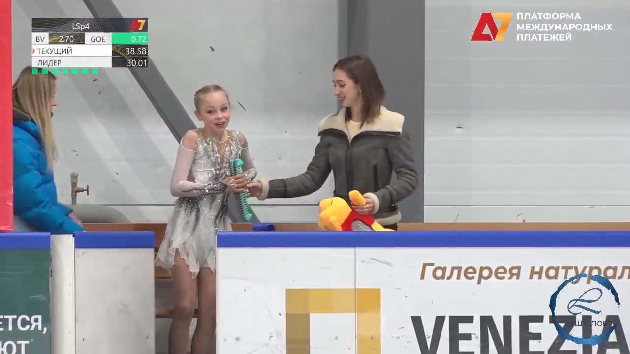 Софья Андреевна МУРАВЬЁВА Санкт-Петербург, СШОР "Звездный лед" 3z3t 3fq? с крошкой 2t 3r 3s обнимает себя во всех местах chsq1 3z ho 2a2t на минус 3f< 2a lsp3 stsq2 fall на попу