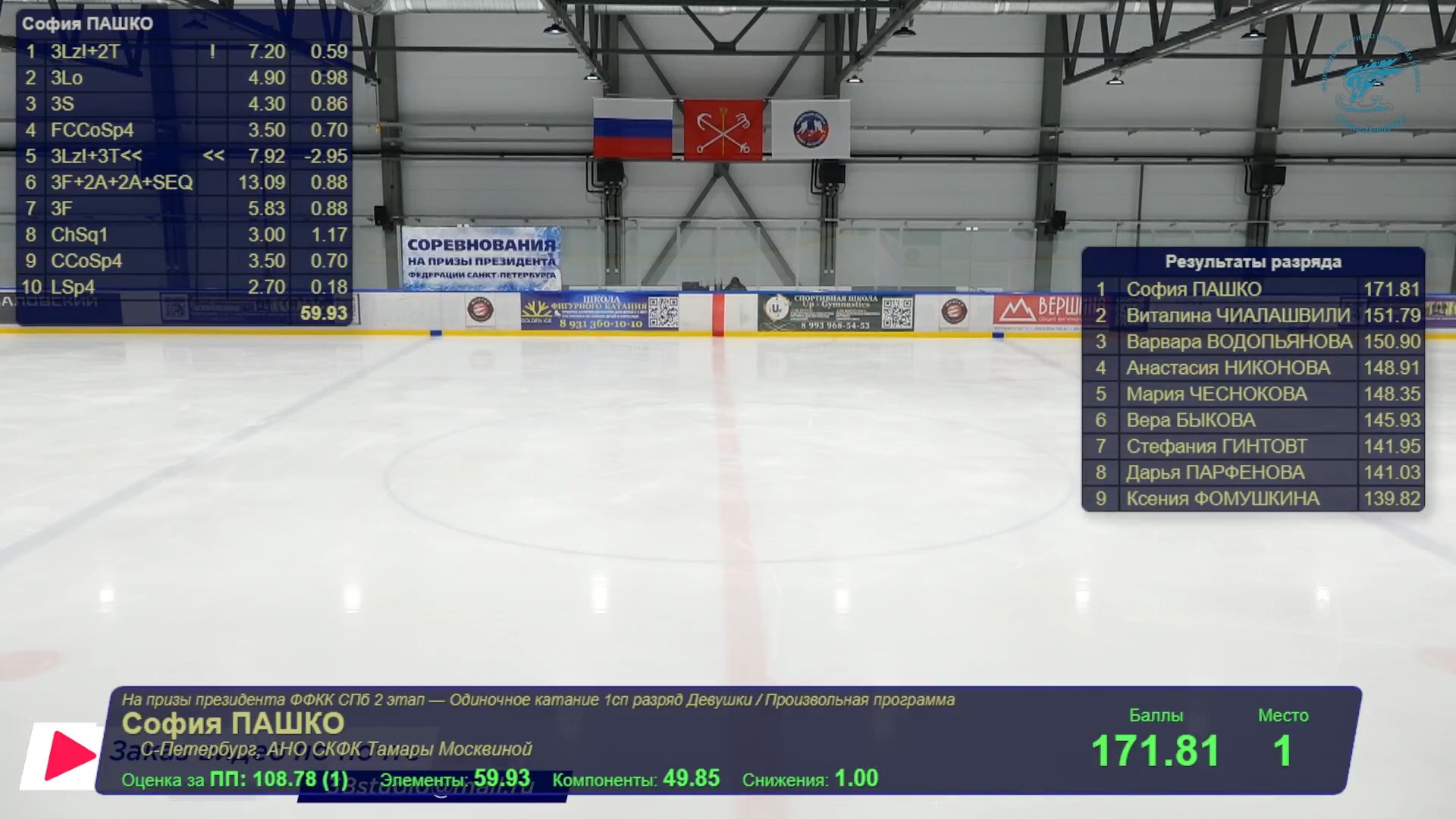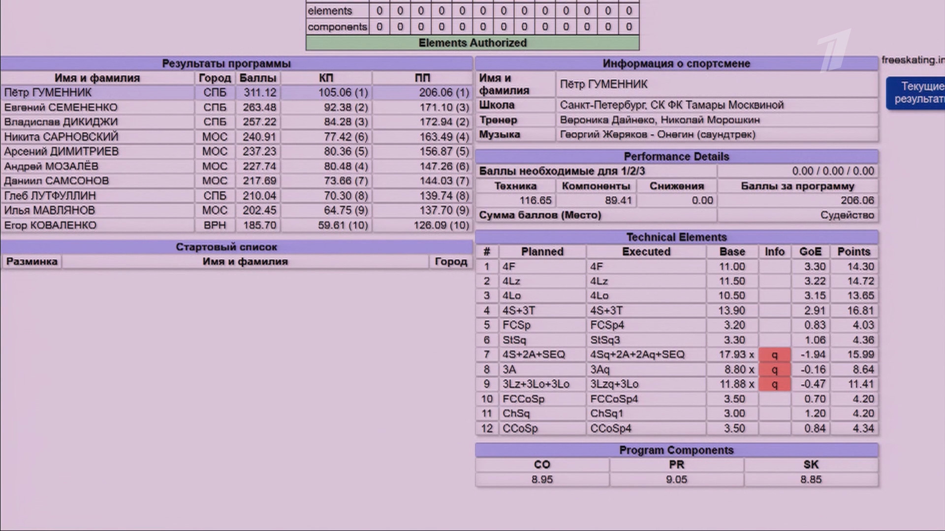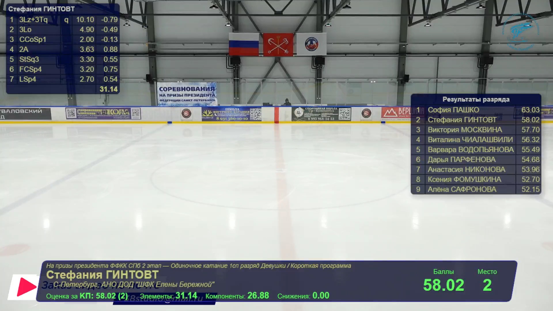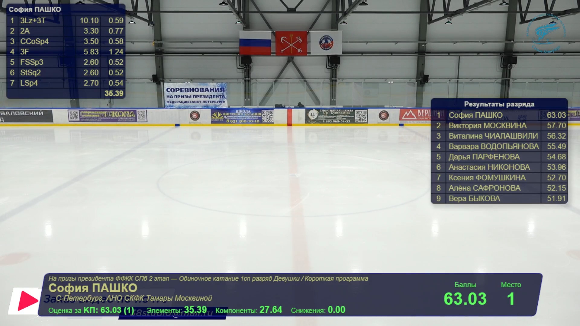 Софья Андреевна МУРАВЬЁВА Санкт-Петербург, СШОР "Звездный лед" 3z3t 3fq? с крошкой 2t 3r 3s обнимает себя во всех местах chsq1 3z ho 2a2t на минус 3f< 2a lsp3 stsq2 fall на попу