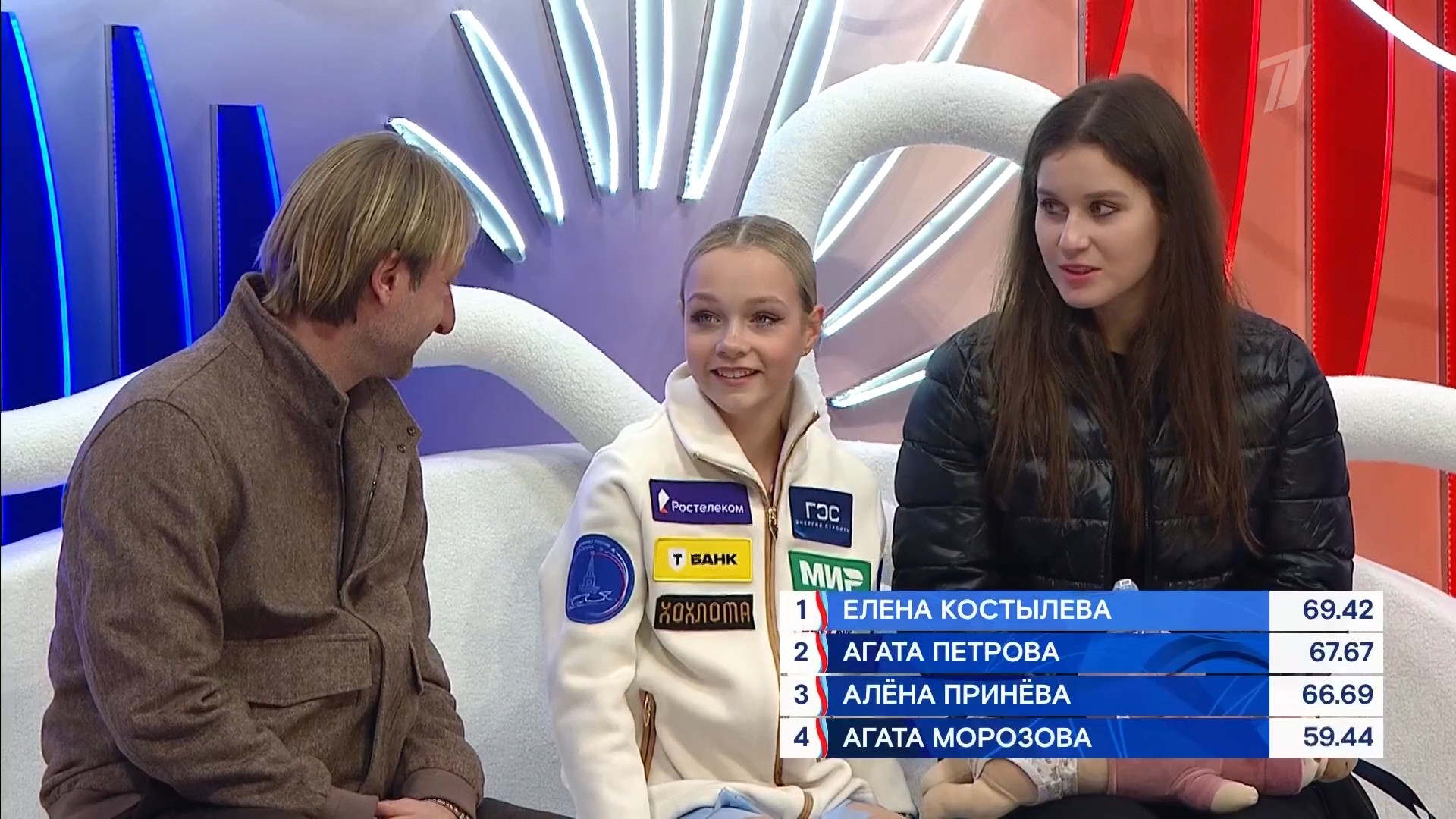 Елена Валерьевна КОСТЫЛЕВА с Митрофановой и Плющенко Московская область, УОР №1, АФК "Ангелы Плющенко" 3a "стой!!!!" 3t 2a упростила заход, да и выезд тоже 3r с бести, не очень уверенно выехала, опять заход упростила stsq4 сосредоточенно делала lsp3 быстрее чтоб успеть Не смотря на упрощение программы, Щербакова нашла улучшения