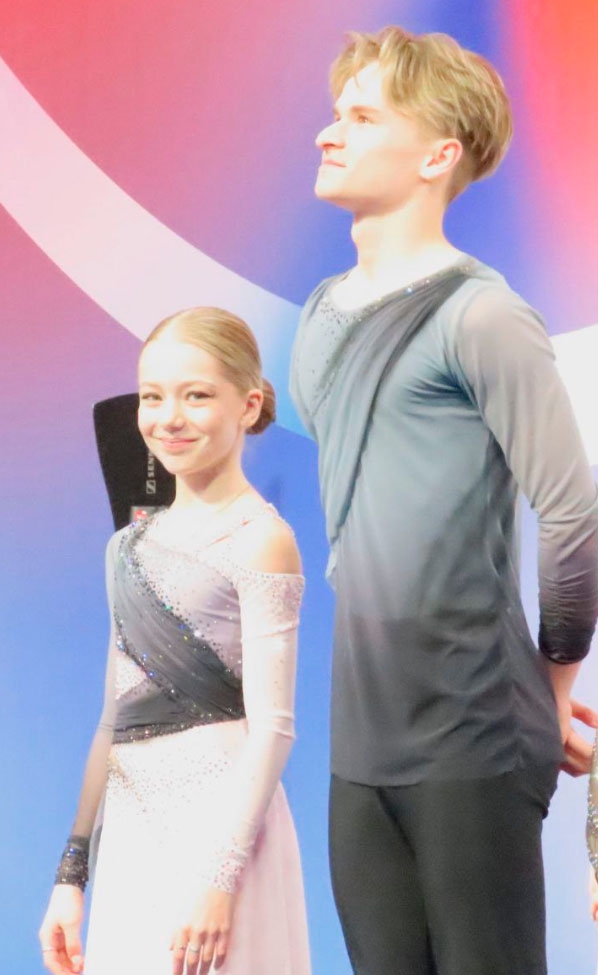 Анастасия Александровна СОКОЛОВА, Денис Леушин СШОР им.С.А.Жука по фигурному катанию на коньках в розовом посылает воздушный поцелуй судьям 2f (2fe - не помогло) 2a fall 2z2t stsq2