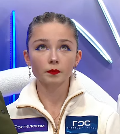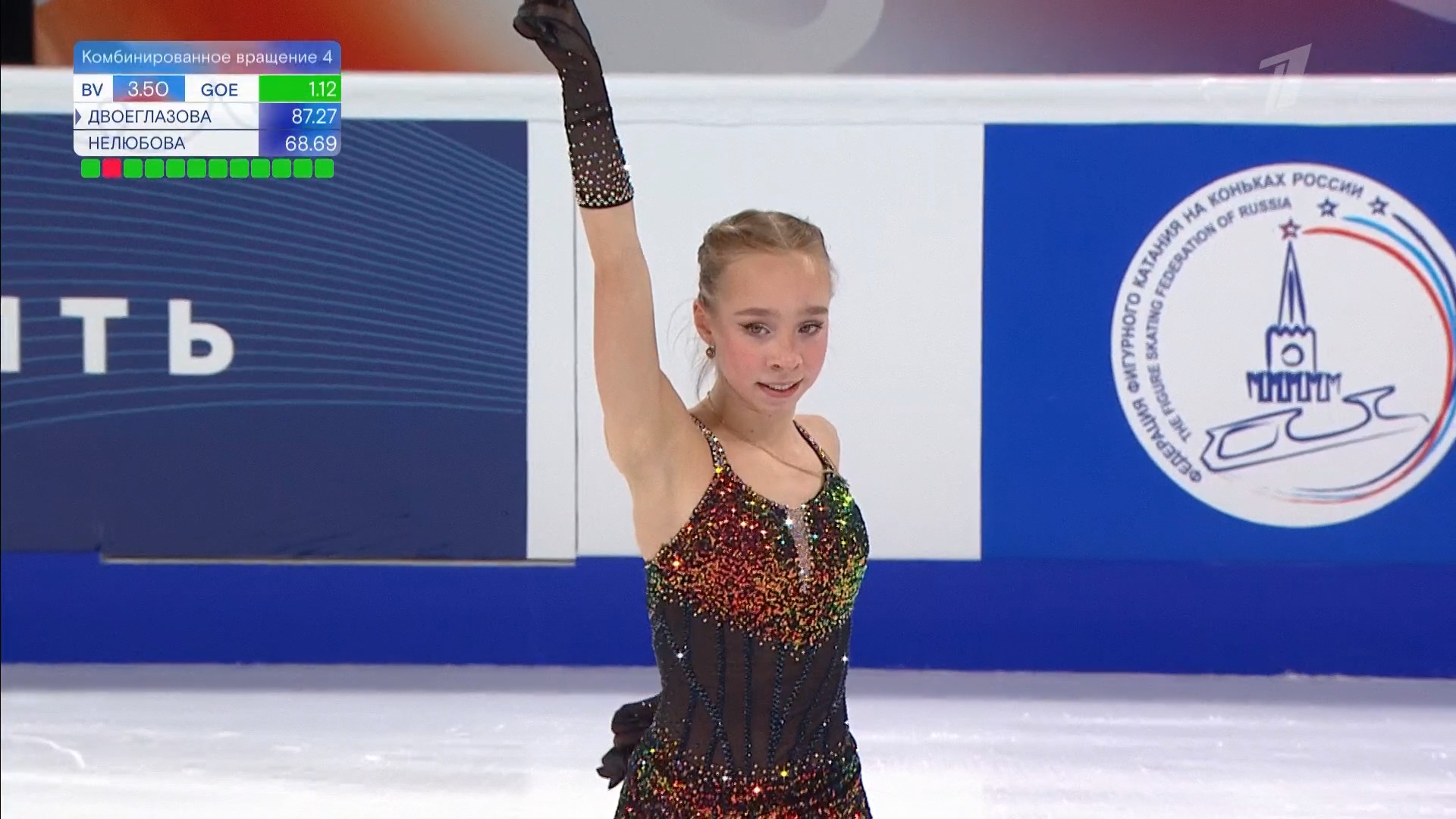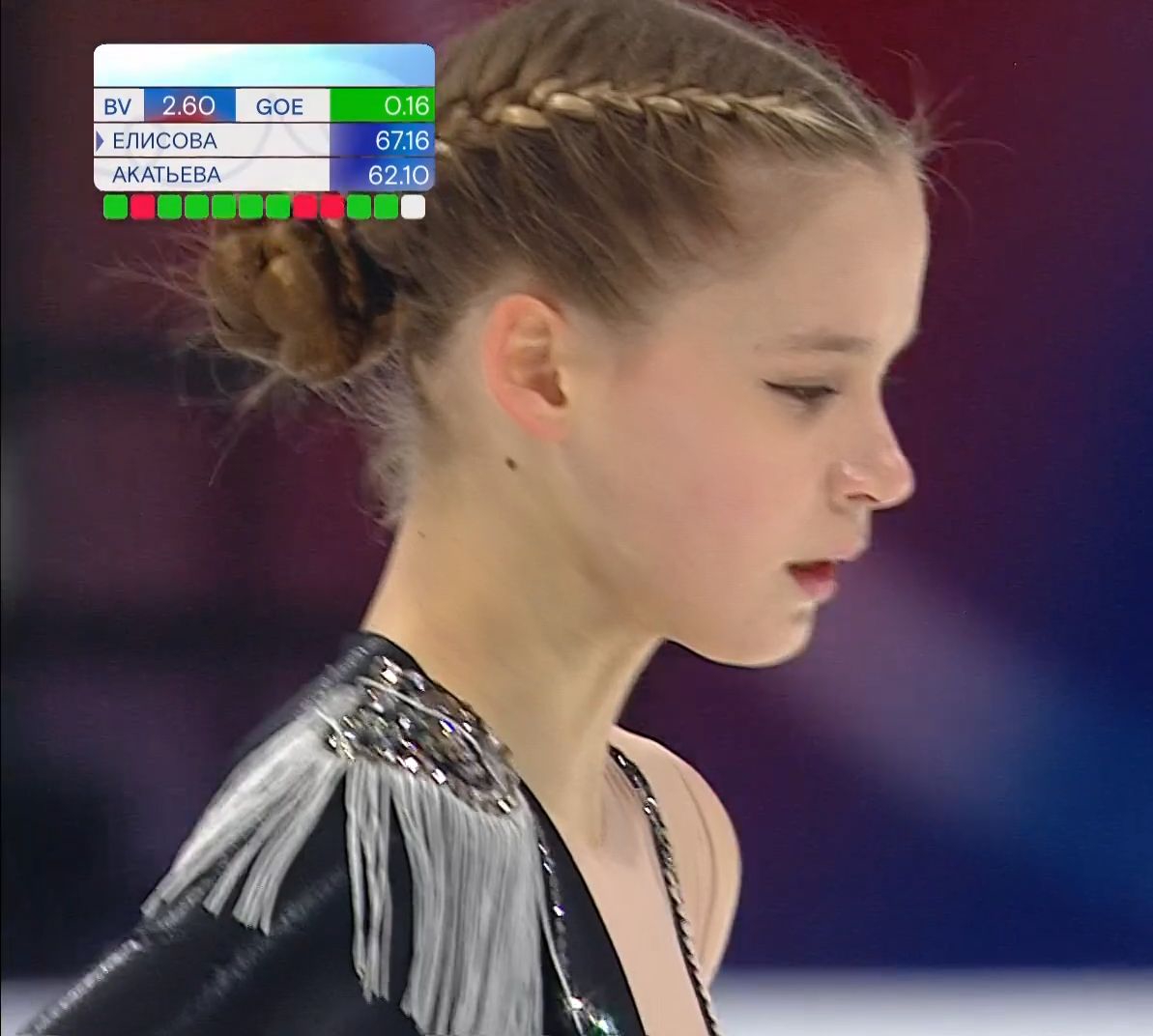 Алиса Ивановна ДВОЕГЛАЗОВА Москва, МАФКК - школа "Хрустальный" >А эта хищница, пусть вас не обманывает её ангельский вид, нацелена только на победу 4z< "идеальный четверной лутц" 4t< fall - идеально слетела ось в бок 3f!2t зачем Двоеглазовой лип? 3r chsq1 со слайдом Двоеглазовой №2 3z3t 3z2a2a wobble 3f! - зачем Двоеглазовой 2 липа? stsq3 устала