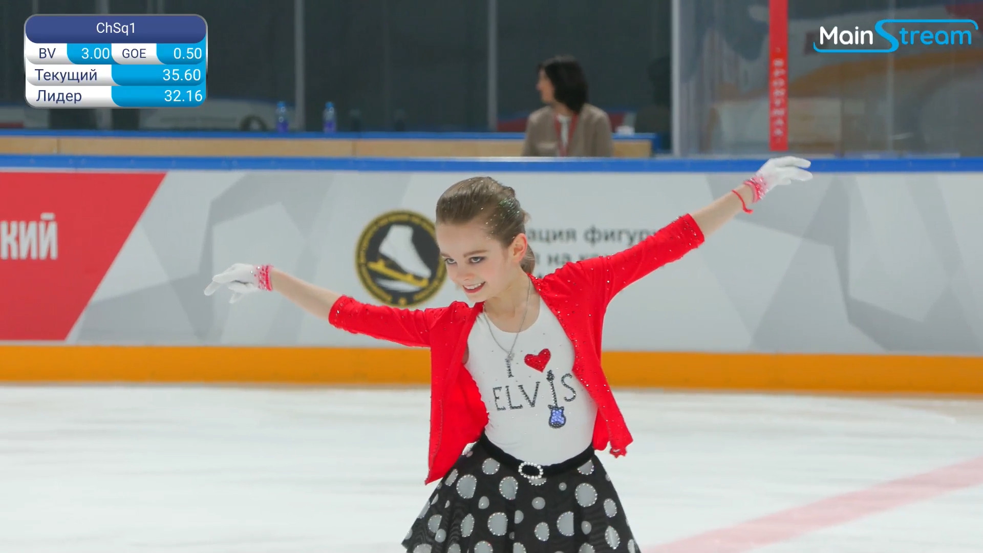 Елизавета Николаевна ЧЕРНЕНКО с А.Ю. lalaland 3s fall на попу в развороте 2a 3s2t ho chsq1 бежит на зубчиках, прыжок в шпагат 2a закрутило so 2z2t2r на месте so рука прыжок в шпагат 2z