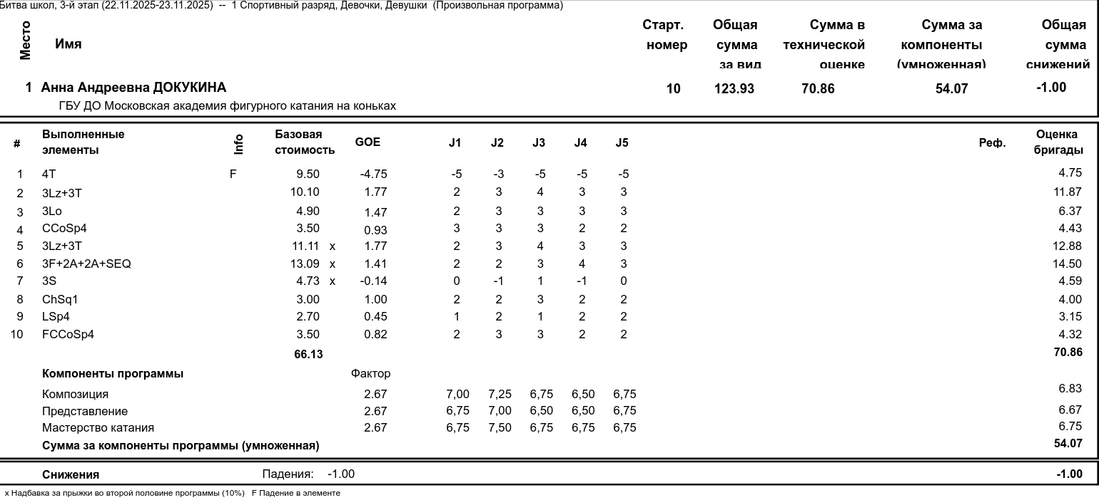 Ангелина Рунатовна ХАМИТОВА (16.06.2010), Юлия Лебедева музыки нет >Ангелина покатайся, пожалуйста, мы вызовем тебя ещё раз 2t разорвало 3r< (<<????) 2 нога 2t 2a<< so fall в борт (раскрылась зачем-то) stsq1 не успела