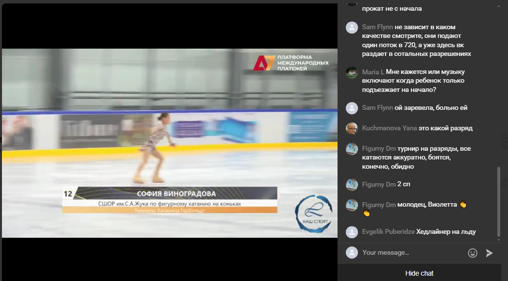 25 ноября https://vk.com/video-78970490_456240704 09.00-15.45 – Юниорки КМС КП (подготовка льда после 3, 6 и 9 разминки) 16.00-17.00 – Парное катание КМС ПП 17.15-18.15 – Танцы на льду КМС РТ