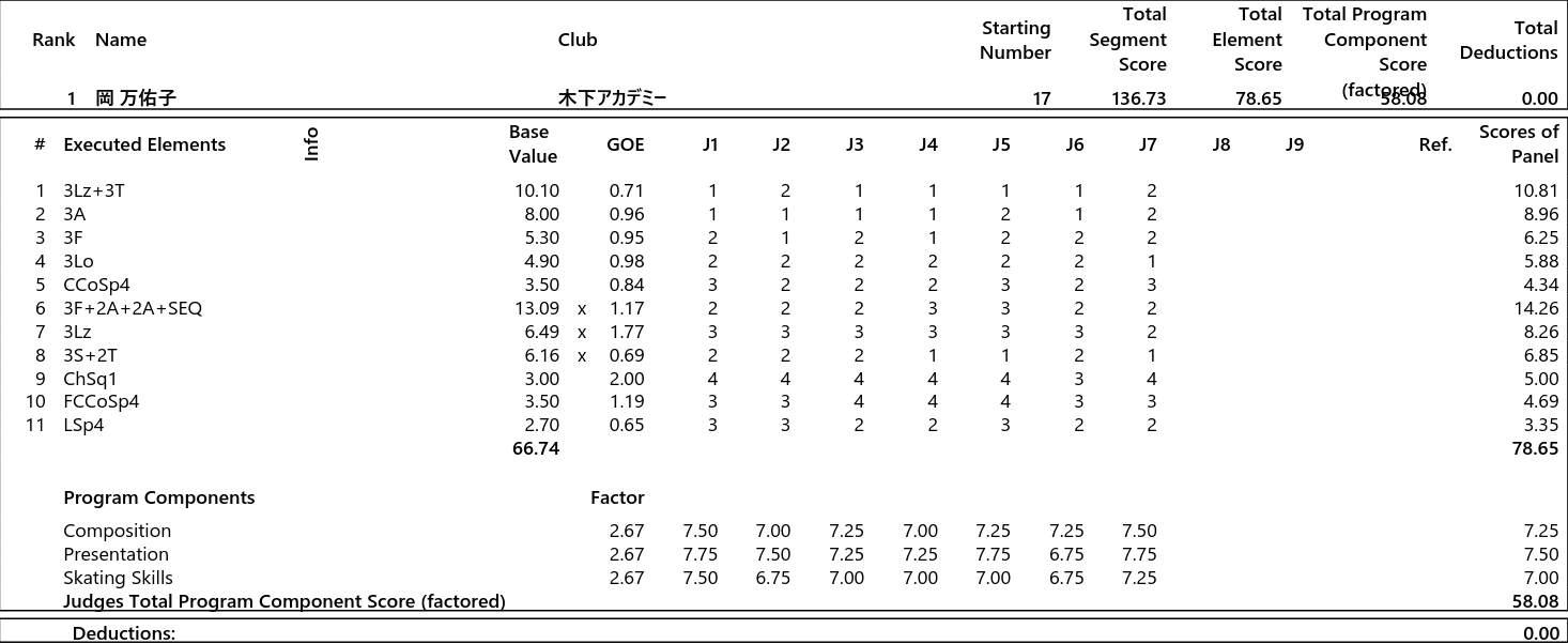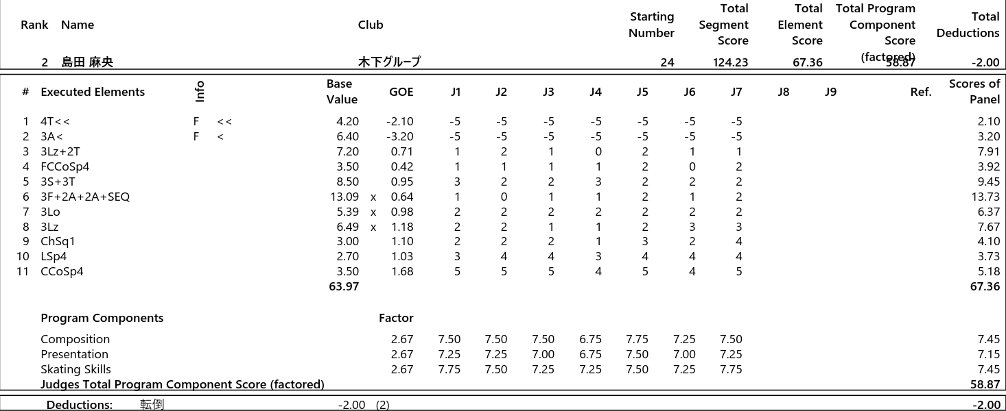 Гинтовт в цепях 3z<?3t<<? 3f<? 2f 3z2a so 3s< fall 2a2t 46,94 ручки в 1 половине несколько сомнительны (перекраивали программу?) Но сама фигуристка хорошая