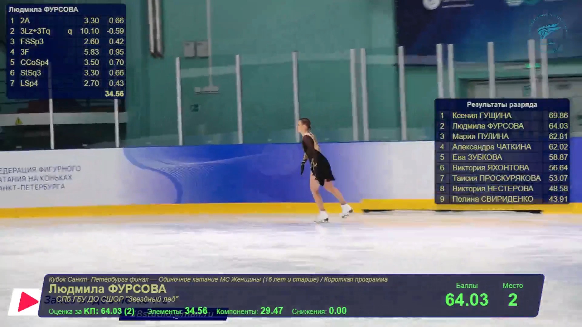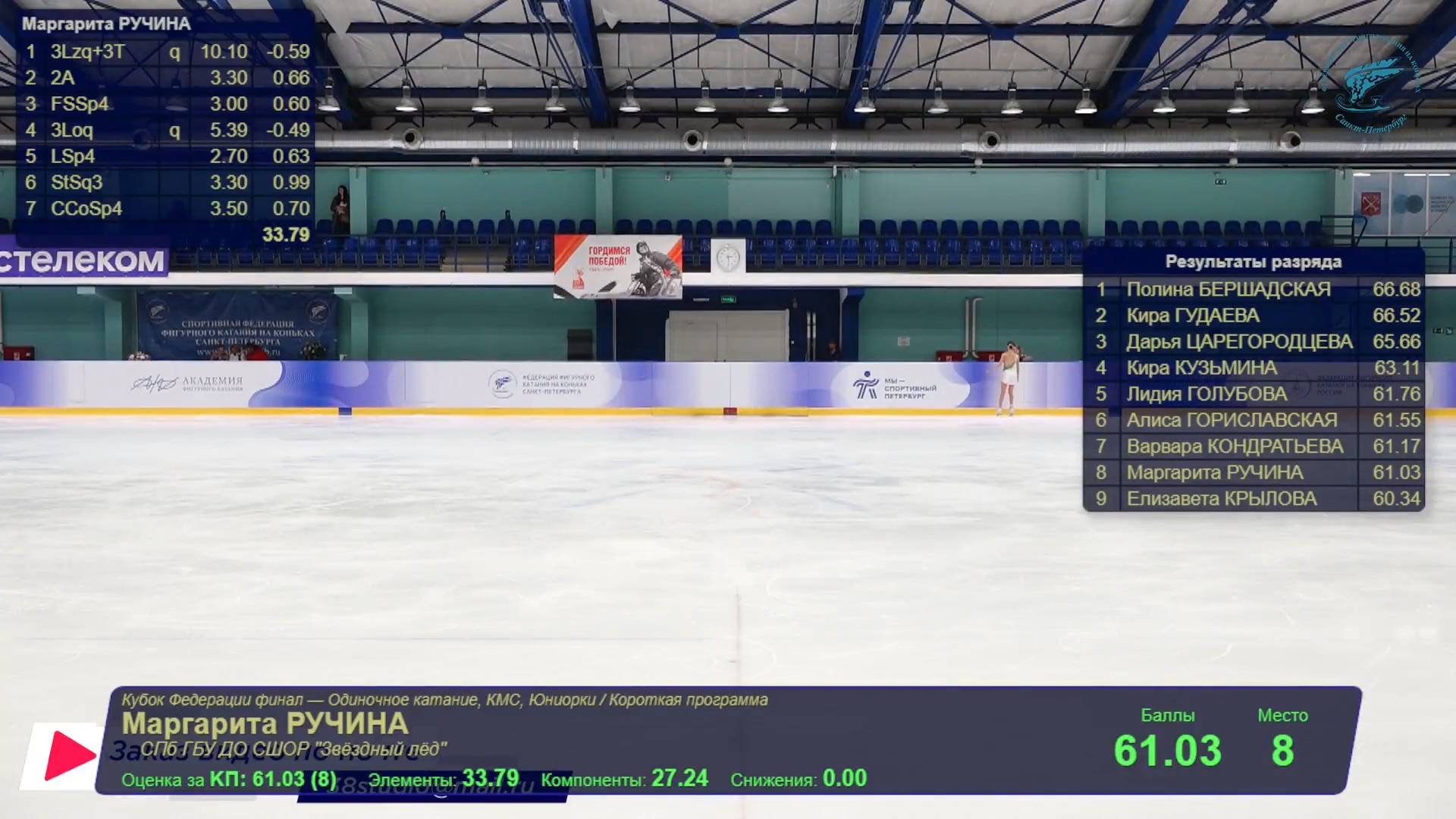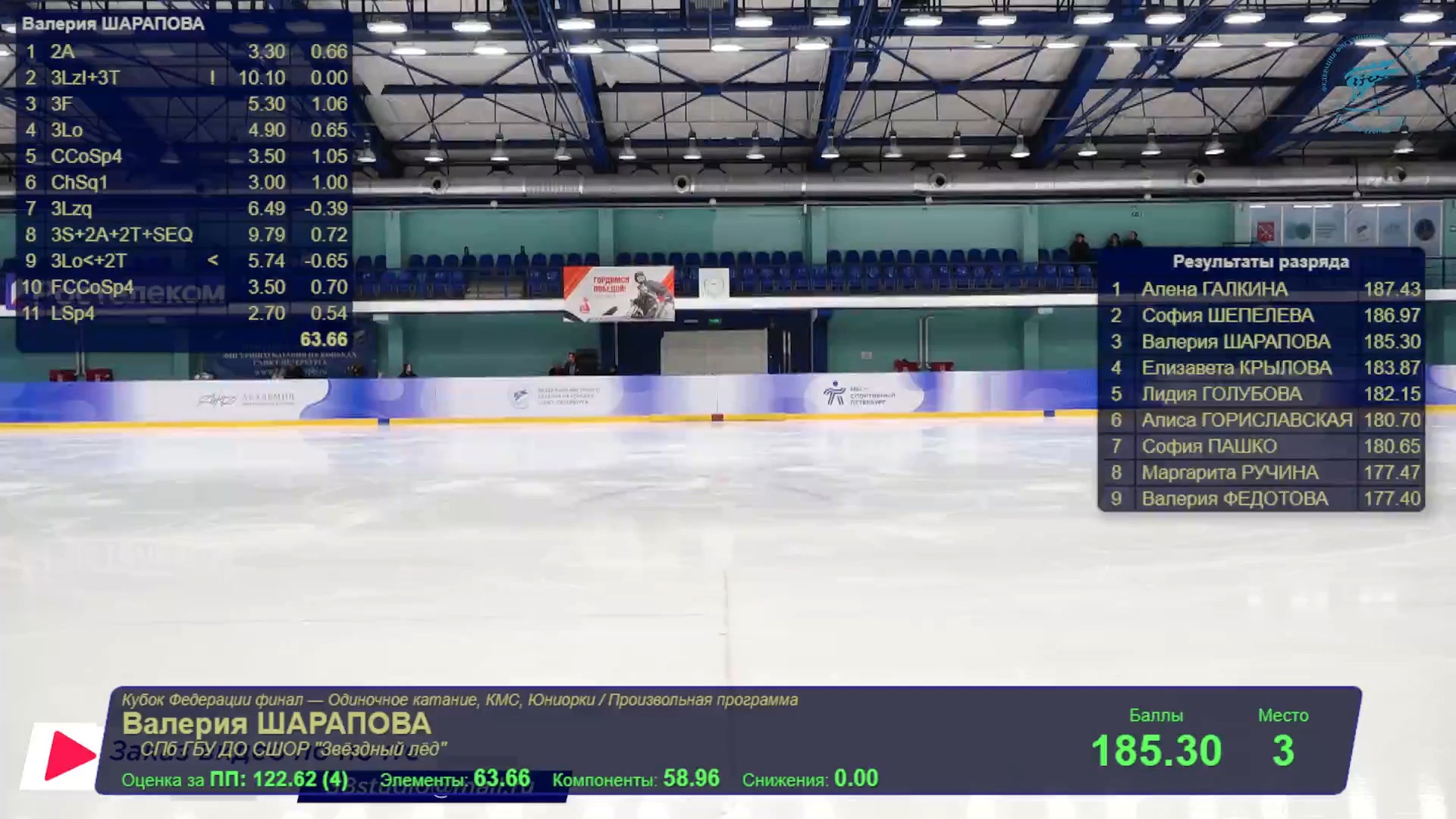 Вероника Владимировна ПОПОВА, 16 лет (2009-10-22) СПБ ГБУ ДО СШОР "Академия фигурного катания на коньках" 3z3t (R) 2a в твизлы 3r (R) - q нашли stsq3 (R) - пересмотрели на 2 почти всё на пересмотр поставили (зачем-то)