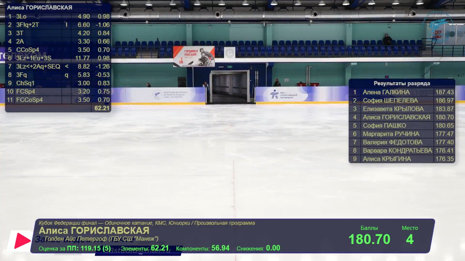Арина Романовна КОМЕКОВА, Грищенко (у которой под Ленинград катают) 2a 3z<<? fall в борт 3r fall в борт в противоположной точке, явно испугалась 26 метров. А ведь она из Краснодарского края 16,82
