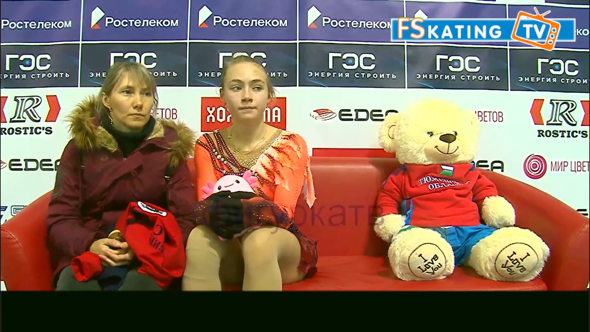 Анастасия Евгеньевна ФУРСЕВИЧ, 14 лет (2011-07-01) ЧОУ ДОД ДЮСШ "Невский лед" с иероглифами на спине 3z<2tq ho (R) 3r< fall (R) с выражением боли на лице 2a закрутило в тройку stsq1 сильно не успела