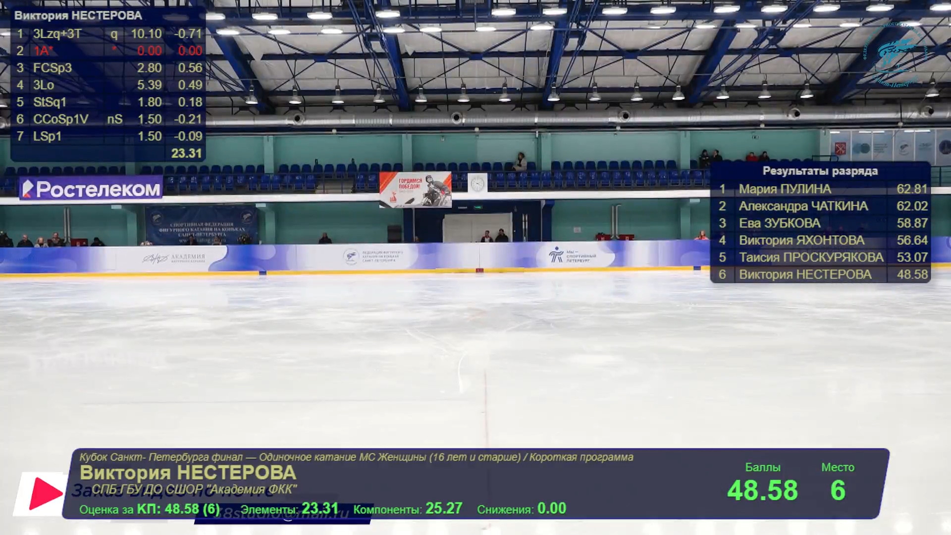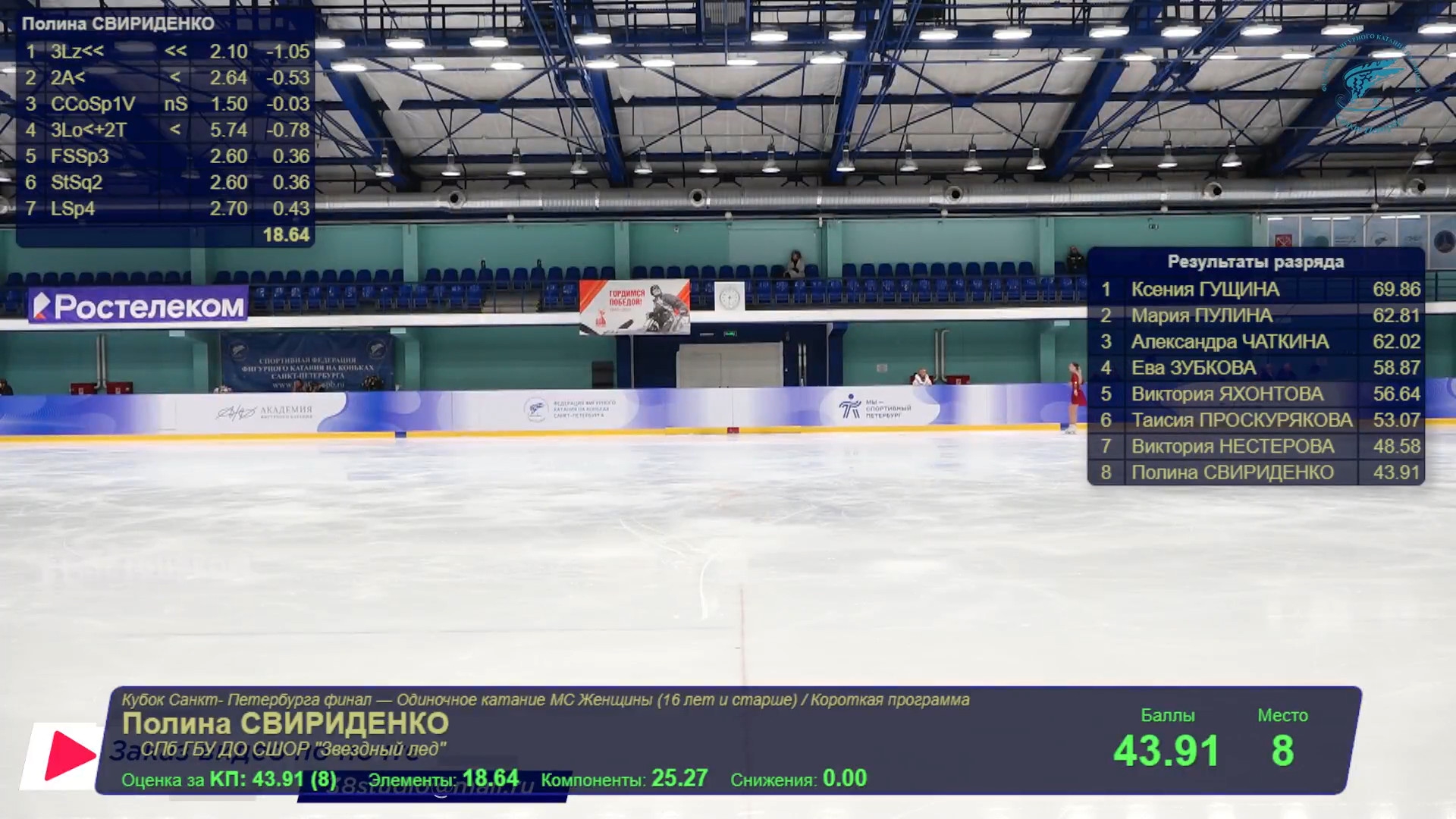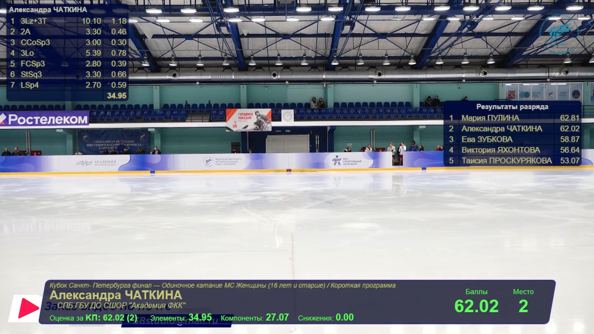 Арина Алексеевна ПУЗАНКОВА, 16 лет (2009-11-14) СПБ ГБУ ДО СШОР "Академия фигурного катания на коньках" у борта "Мы - спортивный Петербург" 3z3t< (R) 3r< 2aq??? stsq1 Гудаева в ПП, Огонькова выбывает