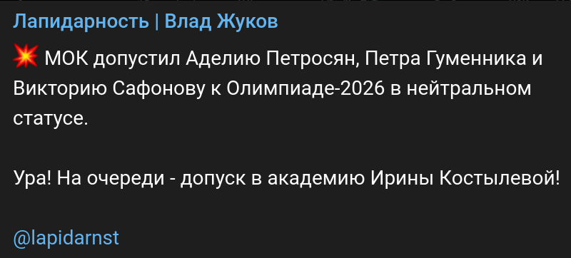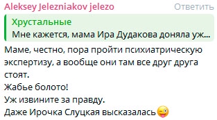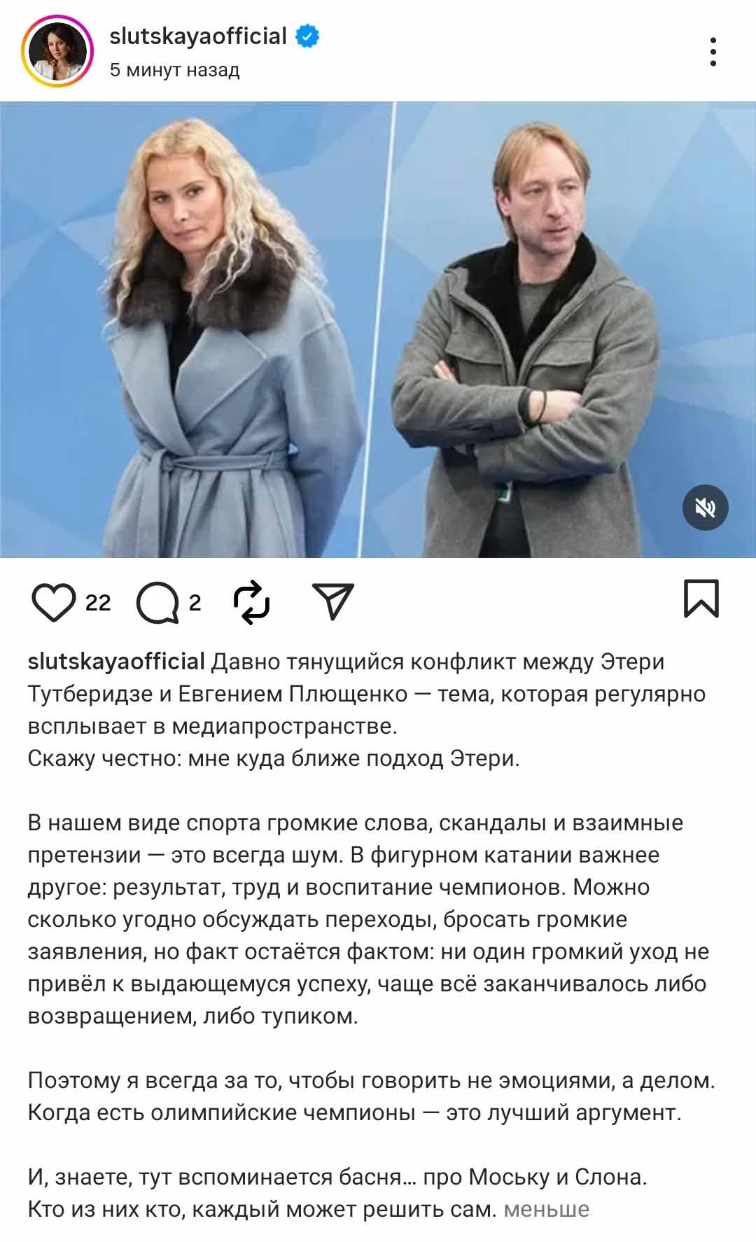 >Яна Рудковская: На данный момент Лена уехала после УМО в Воронеж заниматься своим здоровьем, об этом мне сообщил ее папа. Также попросил Евгения Викторовича снять её со старта, так как она действительно уже почти неделю из‑за гриппа не выходила не лед. Какая же Лапидор дешевая журнашлюха.