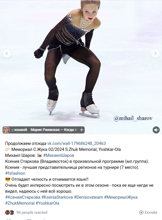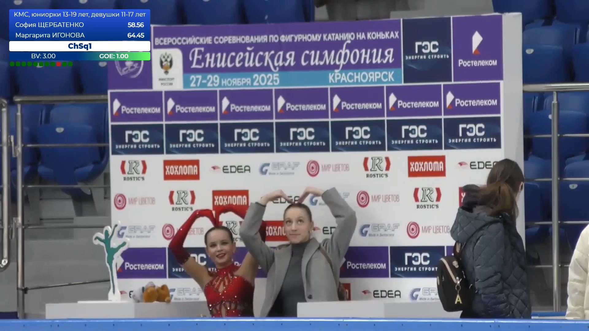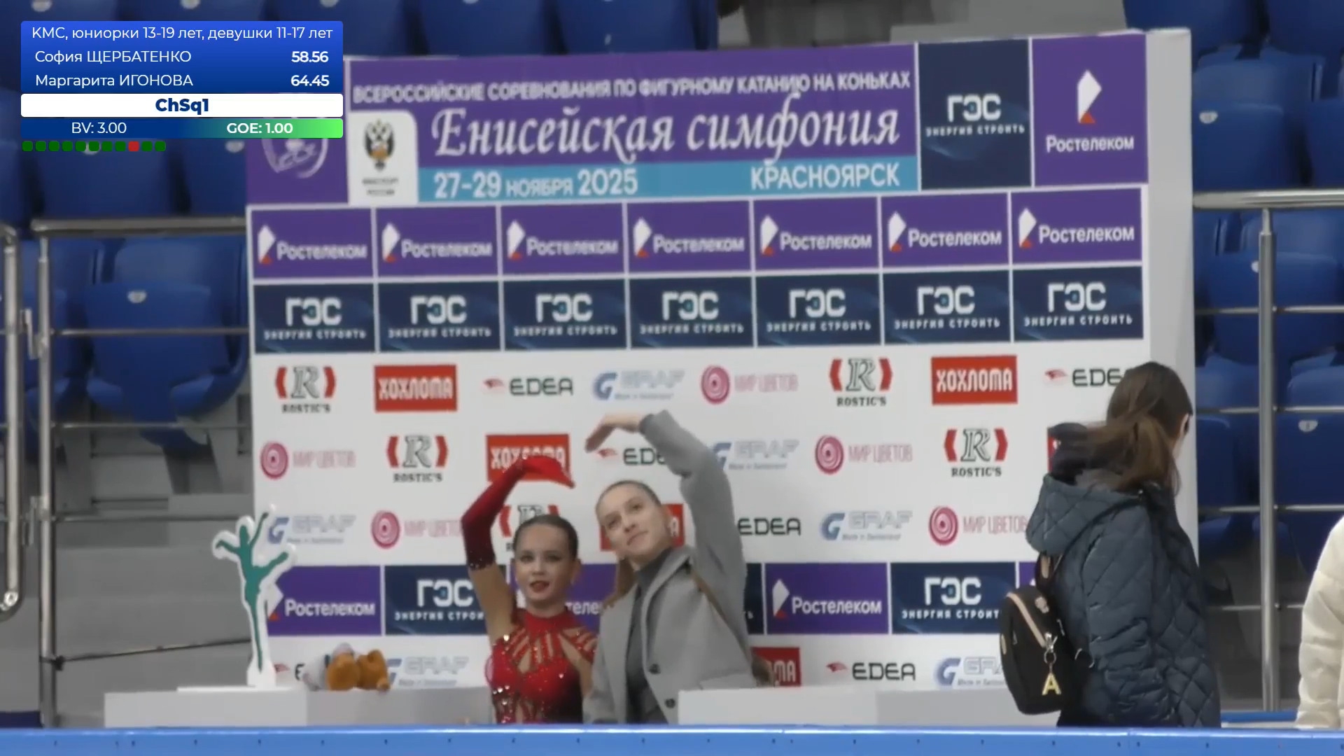 София Игоревна ЛЕВШОВА, Сергей Добрин 3f 3z3t< 3r на заходе с опаской смотрит в камеру владельца треноги 3z!q/<2t 3f2a2a с махоньким воблингом chsq1 прыжок в шпагат 3s