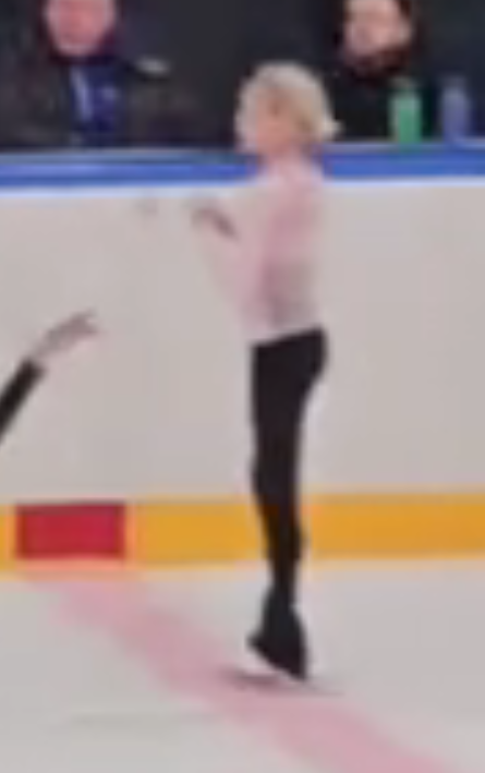 Лидия Александровна ГОЛУБОВА, 14 лет (2011-09-01) с Ефимовой СПб ГБУ ДО СШОР "Звёздный лёд" всех в этой разминке угораздило родиться в какой-то знаменательный день 3r wobble 3z!3t у самого борта 3s с крошкой 2a танцует chsq1 кантилевер 3ze2a2t опять у того же борта 3f2t (R) 3f ho (R) - ребро опять смотрят