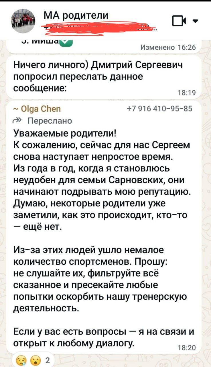 Маму-блогера неоднократно предупреждали о том, что на территории Академии необходимо соблюдать установленные там правила. О том, что нужно вести себя как минимум корректно по отношению к тем, на чьей территории живёт и учится её ребенок и она сама. Чуть больше месяца назад она даже собственноручную расписку написала. Но мама-блогер, как говорится, хозяин своего слова - слово дал, слово взял. В итоге она была удалена с тренировочной арены Академии по нескольким причинам: 1. За систематическое нарушение правопорядка (мат и оскорбления - в адрес тренеров, спортсменов и их родителей). 2. За жестокое обращение с собственным ребенком (Леной) в раздевалке и на территории Академии. С применением физической силы к хрупкой девочке! Есть доказательные видео-материалы с камер и показания свидетелей, включая видео -записи тренеров, персонал и родителей. Мама-блогер уже состоит на учёте в органах опеки по этому вопросу. Все доказательства нами были собраны и переданы во все соотвествующие органы, включая Уполномоченного при Президенте Российской Федерации по правам ребёнка - Марии Львовой -Беловой, а также в ФФККР. Боюсь даже представить, какой шок испытает общественность, увидев эти материалы. Маму-блогера вытаскивали из полиции, раз за разом предоставляя маме-блогеру шансы прийти в себя. Давали за неё поручительство опеке! Шансов было, наверное, слишком много. И их тоже не оценили. 3. За выбегание на лёд с ценными «дилетантскими» указаниями. 4. За съемку наших несовершеннолетних спортсменов из кафе и за выкладывание рассказов про их тренировки в инфо-поле для развития своего очередного блогерского канала. Мама-блогер прекрасно знает, что съемка детей на территории Академии запрещена. Но разве какие-то правила её остановят? Именно из-за неё на окно кафе, выходящее на лёд, были смонтированы жалюзи. Чтобы хоть как-то оградить наших спортсменов от несанкционированеых съёмок. Сейчас они открыты. 5. За оскорбление, мат и угрозы в отношении нашего сына и других детей Академии. И всё это в присутствии свидетелей! 6. За систематическую ложь про наш штаб и меня лично в своих каналах. Так и живем уже 2 сезона подряд с олимпийским спокойствием и давая маме -блогеру шанс за шансом!