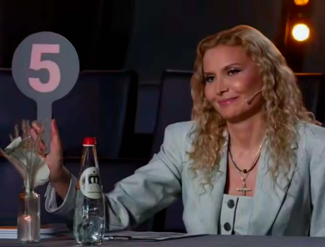Хорошо обыграли костюм Третяьковой, если её перевернуть вверх ногами (что происходит несколько раз за программу), то тогда на груди будет как-бы гореть огонёк.