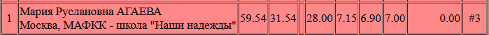 Марина Алексеевна ОГОНЬКОВА, 15 лет (2010-06-21) АНО ФСО КФК "Звезда", Беловежская пуща в бирюзовом 3r< закрутило ho (R) 2a - я к тебе прилетаю Беловежская пуща 3s ho 1t stsq1 >ААААааа-уууу! аааа-уууу!