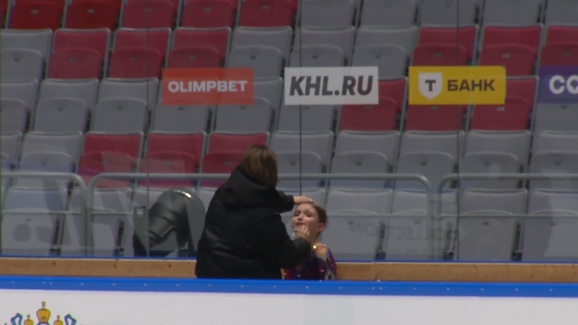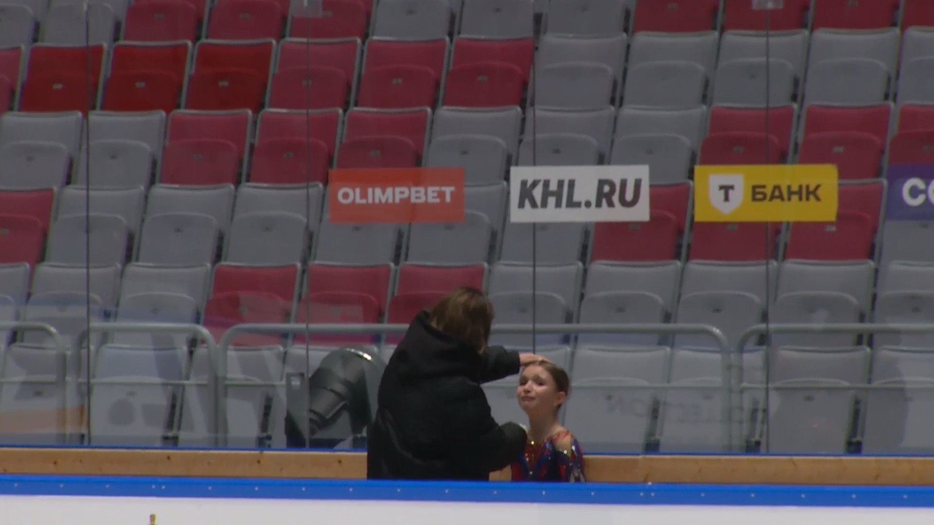 Кира Дмитриевна КУЗЬМИНА, 13 лет (2012-09-05) СПб ГБУ ДО СШОР "Звёздный лёд" пьёт воду из бутылки 3z3t q? 2a на зубчик 3r stsq3