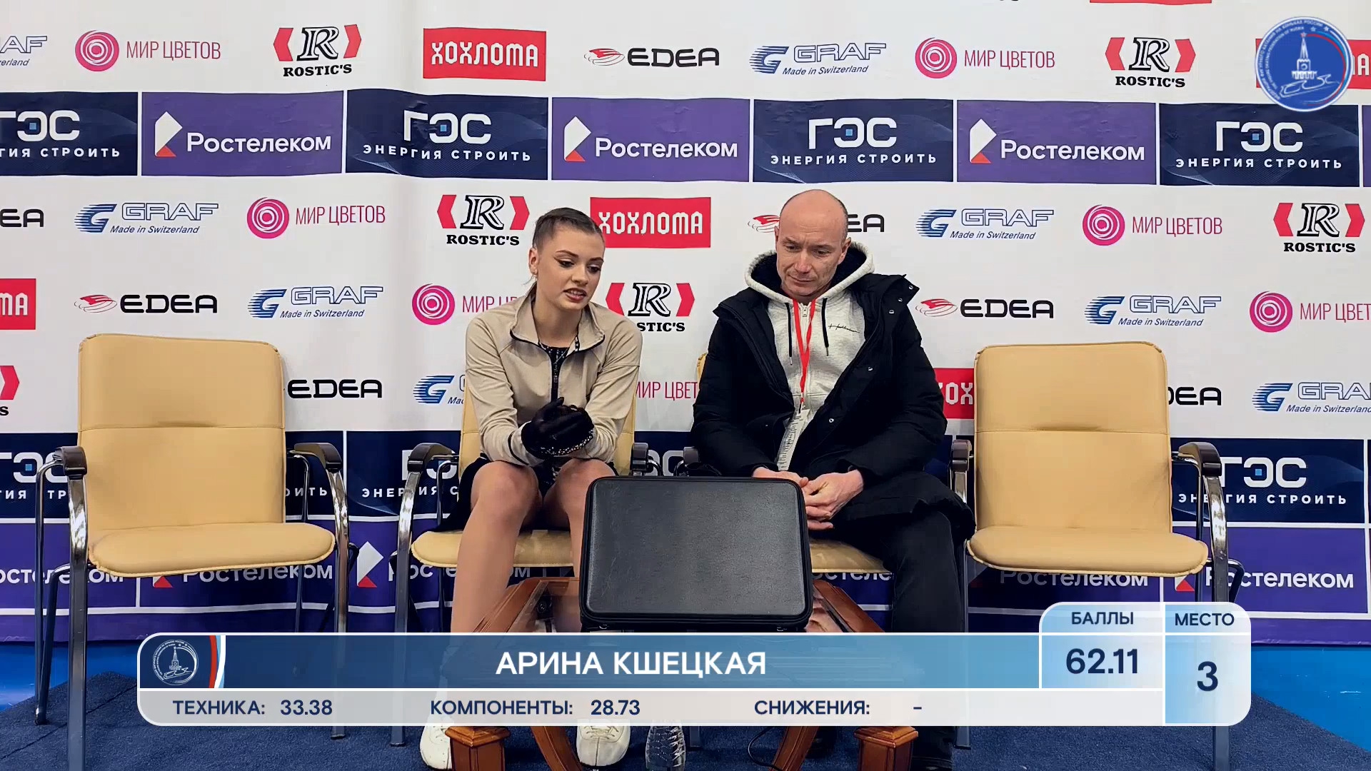 Арина Александровна КШЕЦКАЯ, Олег Татауров, Наталья Тушинская Санкт-Петербург, СШОР "Звездный лед" Arinka O. music 3s?3tq? 2a< с шарлотты 3z< на зубчике stsq2 >Вы выходите на балкон и долго смотрите на пасмурное питерское послезакатное небо. >"At least I'm not french-kissing dogs", говорите себе вы...