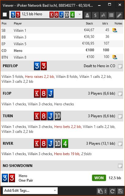 >>3267801 Это был первый такой донк-пуш за год. Нет, не ебёт. И чек/рейзы против овербета тёрна я видел тоже всего пару раз, так что EV выше, чем в ГТО. Да и у меня тут тоже все фуллы есть, доперы иррелевантны из-за спарки, а трипсов примерно поровну на тёрне из-за x/r флопа.