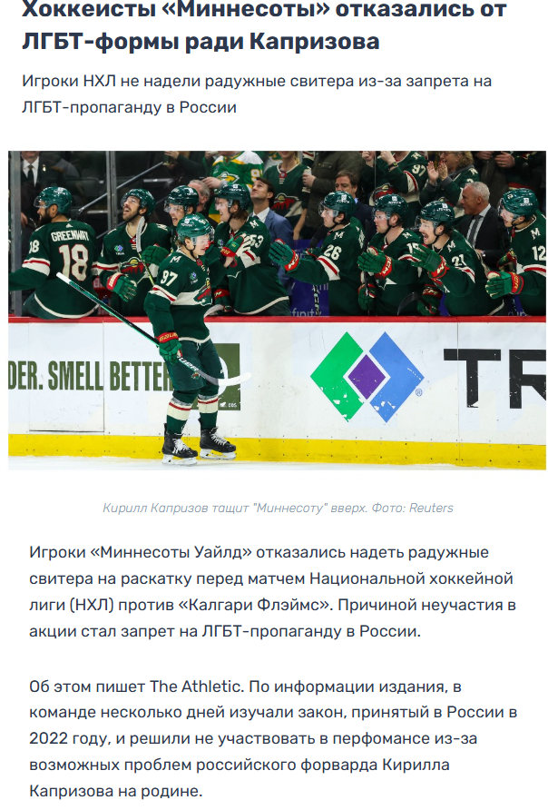 ОТ ЗВЁЗДОЧЕК ТОКА ОДИН ВРАТАРЬ, БЛЯТЬ И ВСЁ !!!!!!!!!!!! ГДЕ РОБЕРТСОН, ДОЛБОЁБИНА ?!?!?!?!?!?!?!?! У ДЕБИЛА НА МОРОЗЕ МОЗГИ ОТВАЛИЛИСЬ. Бредни сумасшедшего кретина с Миннесоты какие, настолько мелочная и тупорылая гнида пздц просто. Всех дедов и переломанных подписал, а молодёжь только с его команды. Пидор, бля Очень рад за Болди, пацан нормальный сезон вообще показывает.
