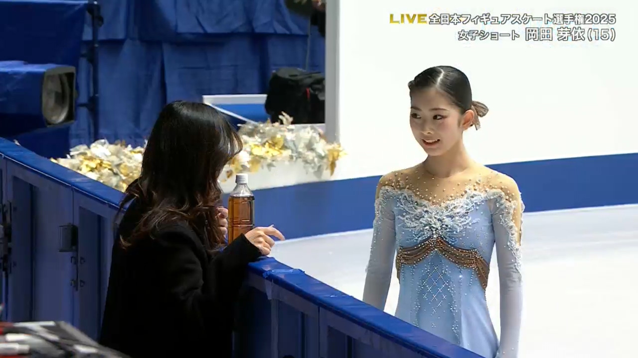 Okada Mei-san, 15 лет юниорка >сайкайтен-сайкайтен! 3fq/<? (R) 2a с кораблика-бауэра в костоподскок и твизлы 3z<?3t<? (R) stsq3 со слайдом на колене как-то не впечатлила