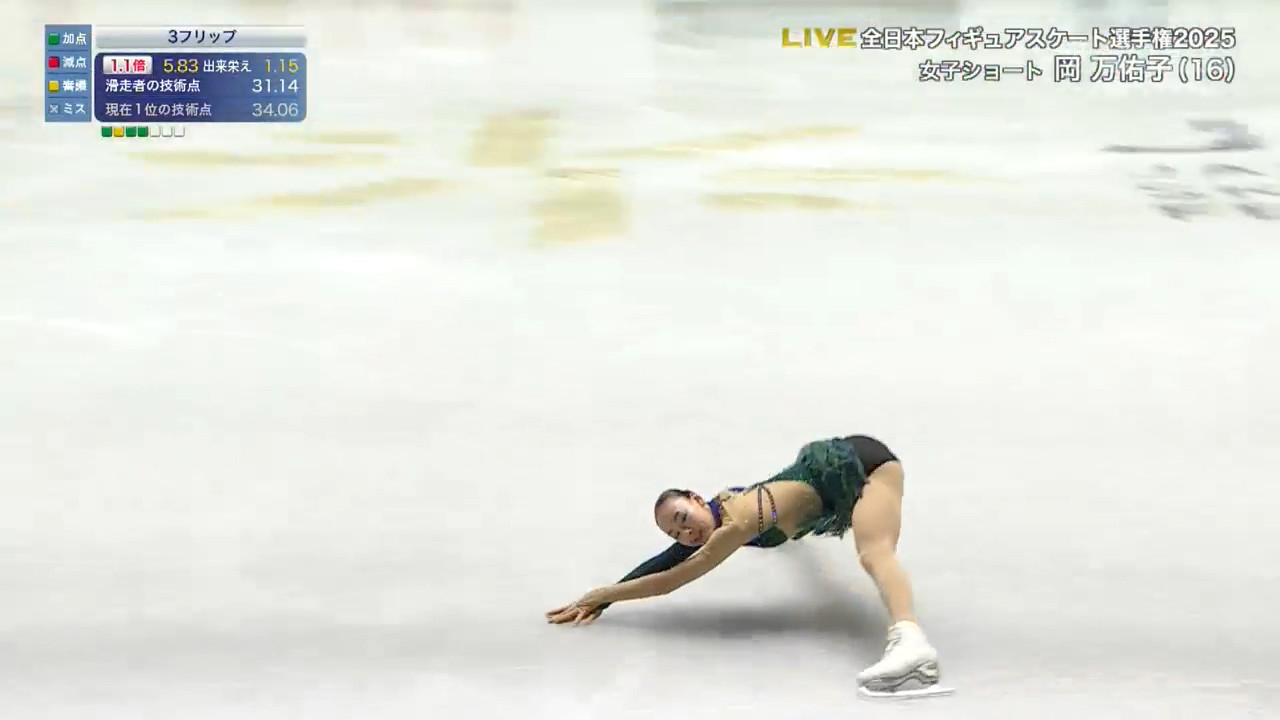 Kawabe Mana-san, 21 год, тоже с хвостом в жёлто-салатовом, лайм? lalaland 2a 3f!?q?3t (R) 3z такое ощущение что касается 2 ногой и на 3f и на 3z stsq3 подскакивает опёршись об судейский бортик