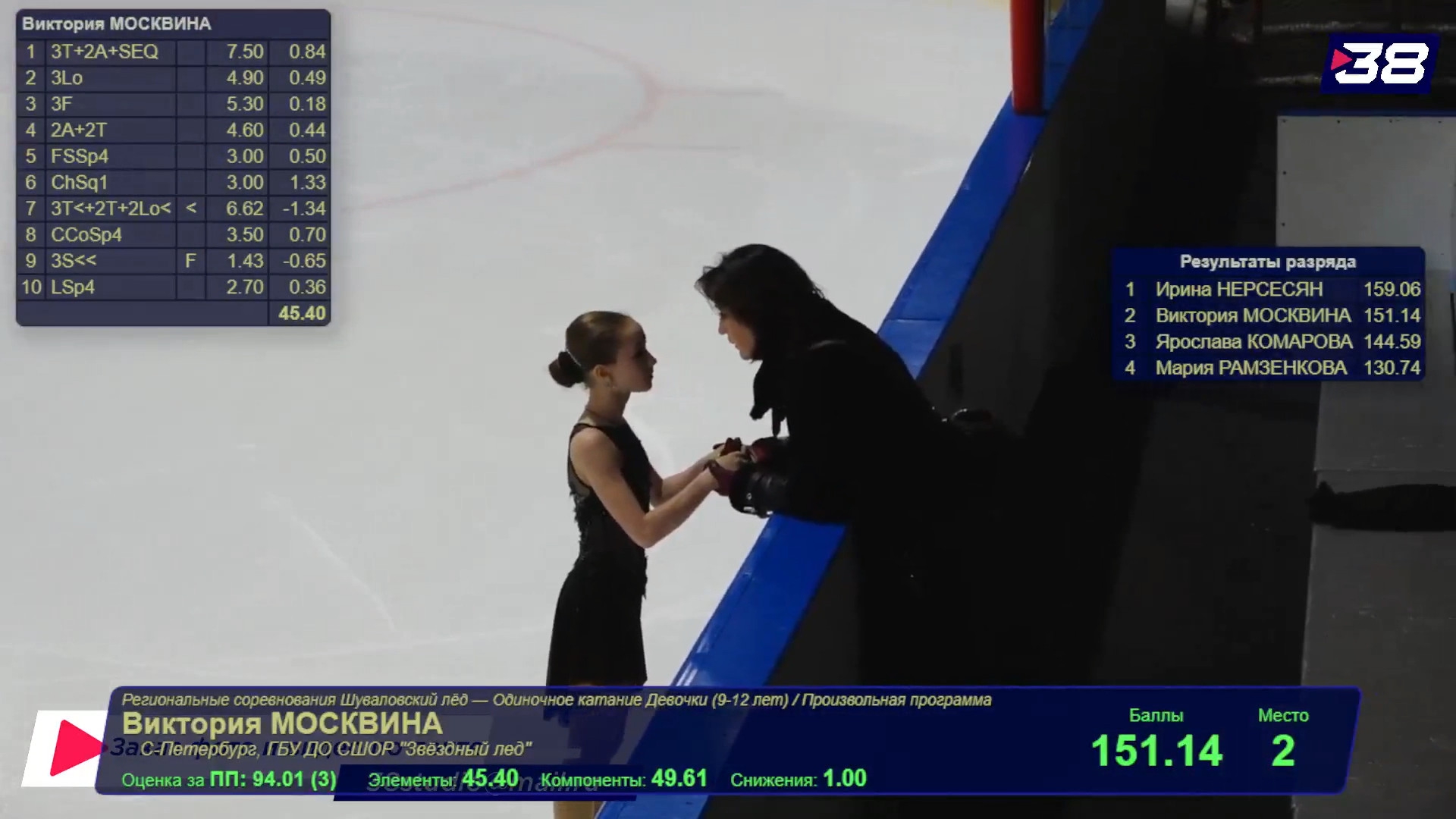 Ирина Григорьевна НЕРСЕСЯН, 10 лет (2015-01-31) c Ефимовой С-Петербург, ГБУ ДО СШОР "Звёздный лед" Песни румынских цыган 3z<?3t< so (R) (3zq3t<) 2a stsq2 3r с такими прокатами на Спартакиаду не отбираются плачет закрыв лицо руками
