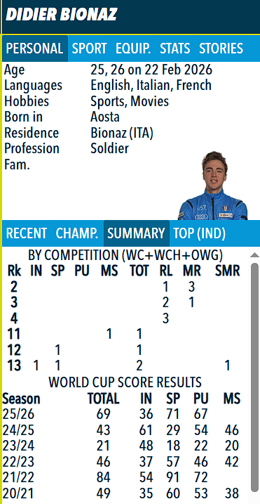 Бионаз в тотале в 23/24 был на 21-ом месте и казалось - вот, нащупал, сейчас в гору пойдёт - но увы. У остальных так же, хотя они и не пердуны даже. Надеюсь, наскребут бабок итальяшки, чтобы ещё кого-нибудь обколоть допингом, как Джакомеля, чтобы тусовку французов-норвежцев-шведов хоть кем-то разбавлять