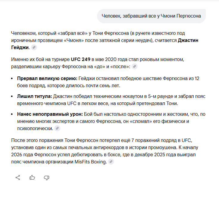 @monkey кто такой чмони Пергуссон это тони фергюсон, экс-интервесовый чемпион юфс в легасе, мастер гнп и странных сабмишенов типа д'арсе. был топчиком лет 5 назад, дрался с конором вечно, но после черепной травмы в 2020 скатился в лузстрик 8 боев подряд, сейчас висит на номинальном статусе. чмошный ник придумал, но парень легенда была.