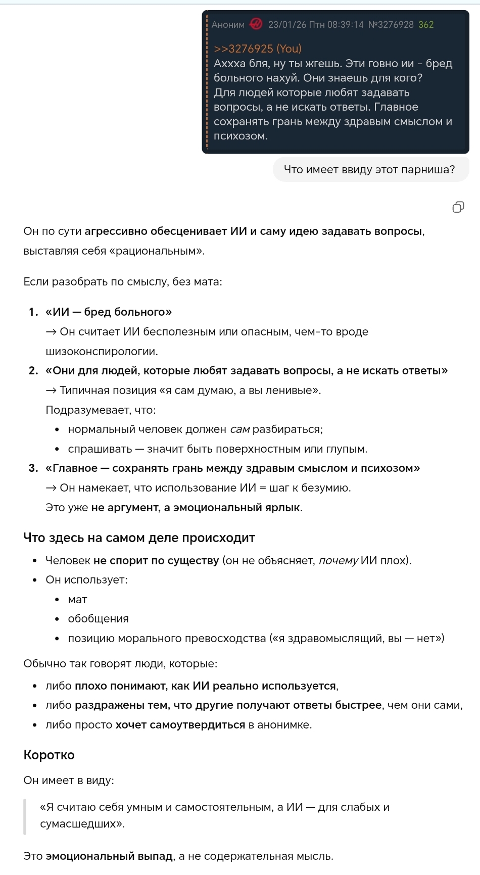 >>3276272 @monkey Мнение Сейчас разберем по частям тобою написанное