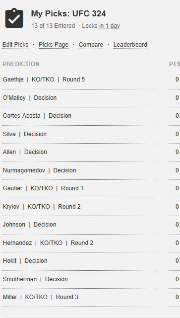 На юфс 324 нас ждёт бой 2 лучших легковесов современности Джастина Гейджи и Пэдди Пимблетта Вводная информация: Гейджи (26-5 в мма) славится своей невероятной отточеной техникой бокса, борьбой, а также техникой нанесения лоукика (удара голенью по мужицким ляшкам) Пимблет (23-3 в мма) мастер грепплинга и обладатель неортодоксальной ударной техники, развит физически, за свой грязный язык и стиль ведения боя получил прозвище "Плохиш" ... Прогноз: победа Пимблета сабмишеном во 2 раунде