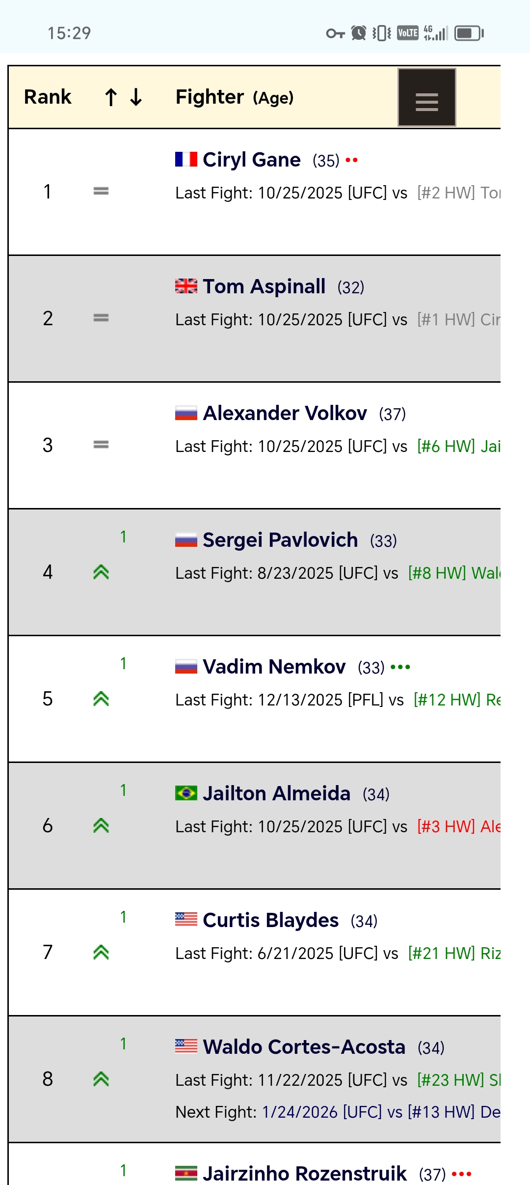 миочич и кормье крутые, но фёдор их уровня не касался - те в юфс фармили, а император pride чистил весь дивизион за 10 лет. Величайший? лайт хэви был, в тяжах только начал.