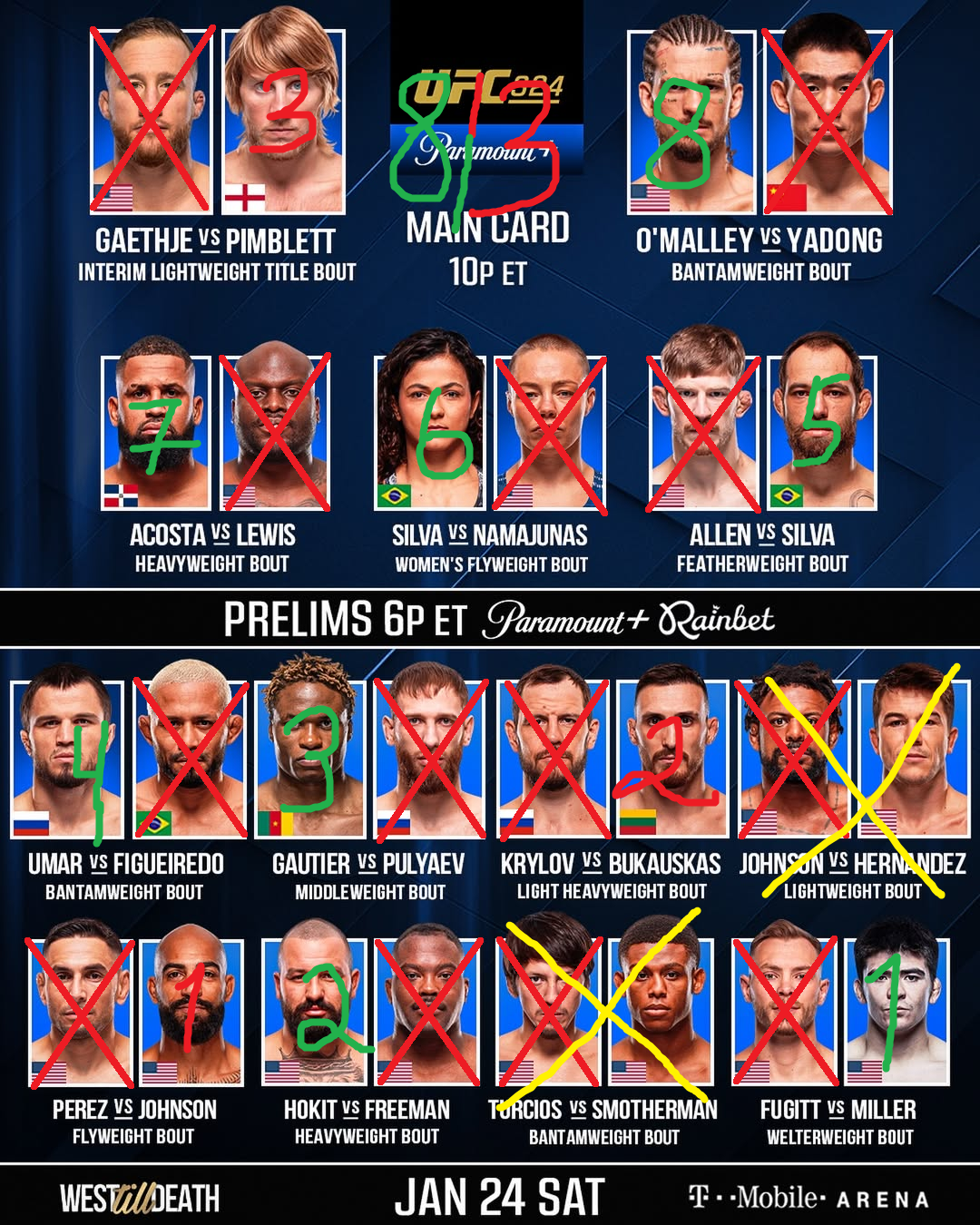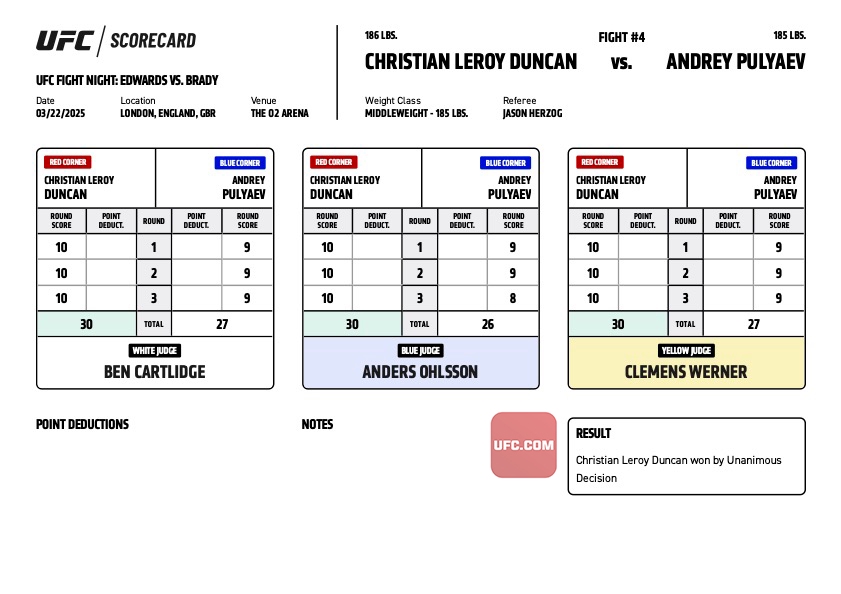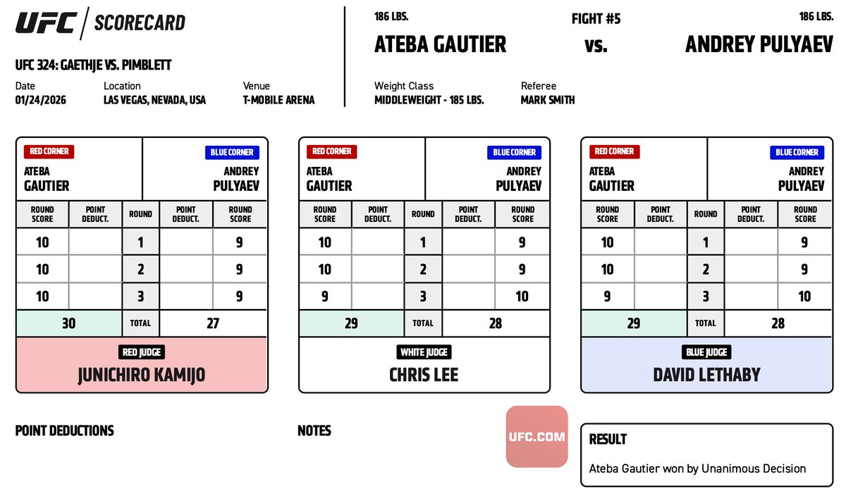 Пимблет лох, но всё равно бой красивый получился. Омелли очевидно было. Акоста очевидно было. Наташа с привкусом булшита, но ок. Силва - мальчик треда. Умар очевидно было. Готье разочаровал вообще. Пуляев его гонял как собаку, но нокдауны зарешали. Перез молодец. Джош Хокит норм, но всё равно он мешок. На мешке норм отработал. Миллер норм, но всё равно бомж.