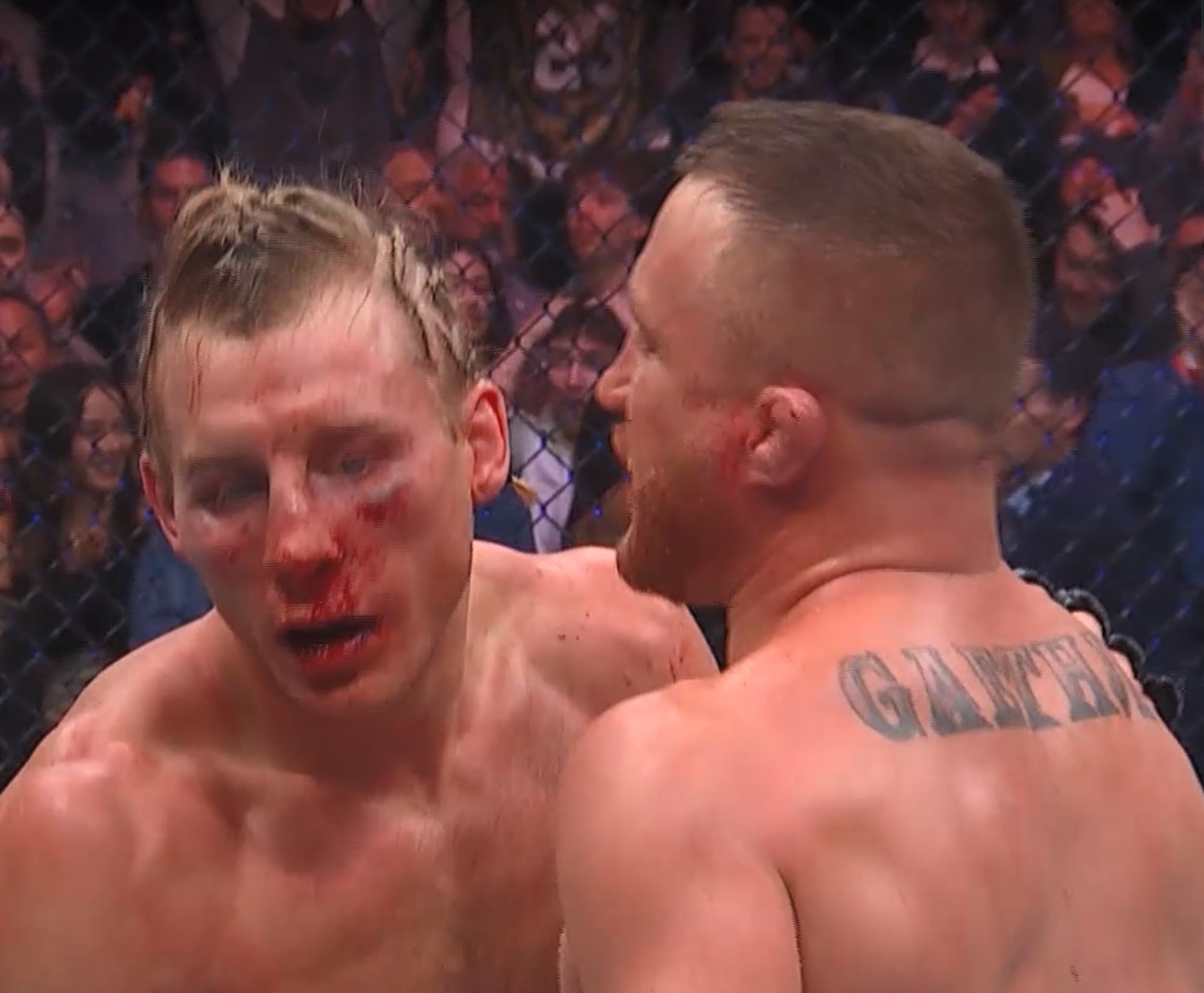 Как думаете, на Падди Зе Бадди распространится знаменитое проклятие Джастина Гея Джи, которым он поразил Тони Фергюсона, Джеймса Вика и Рафаэля "девочку внутри" Физиева? Джастин отобрал у них бетонную челюсть и мужское. Что-то мне подсказывает, что Падди жёстко поплатится своим здоровьем и челюстью, слишком большой урон он принял сегодня.