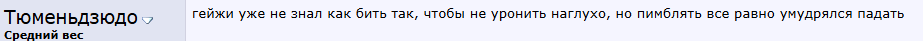 Какое уважение Педдику? Чел буквально дали чувака без грепплинга которому 38 будет в этом году плюс он явно крупнее в день боя Гэтжи и даже тут старый Гэтжи с стафилаккоком на шее было видно какой он медленный обоссал Пимблетта