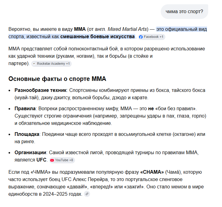 > Так и исходя из чего конкретно мма не спорт? Так какая целенаправленная подготовка есть у ММА? Что они тренируют целенаправленно. Жиу жицу, бокс, борьбу...